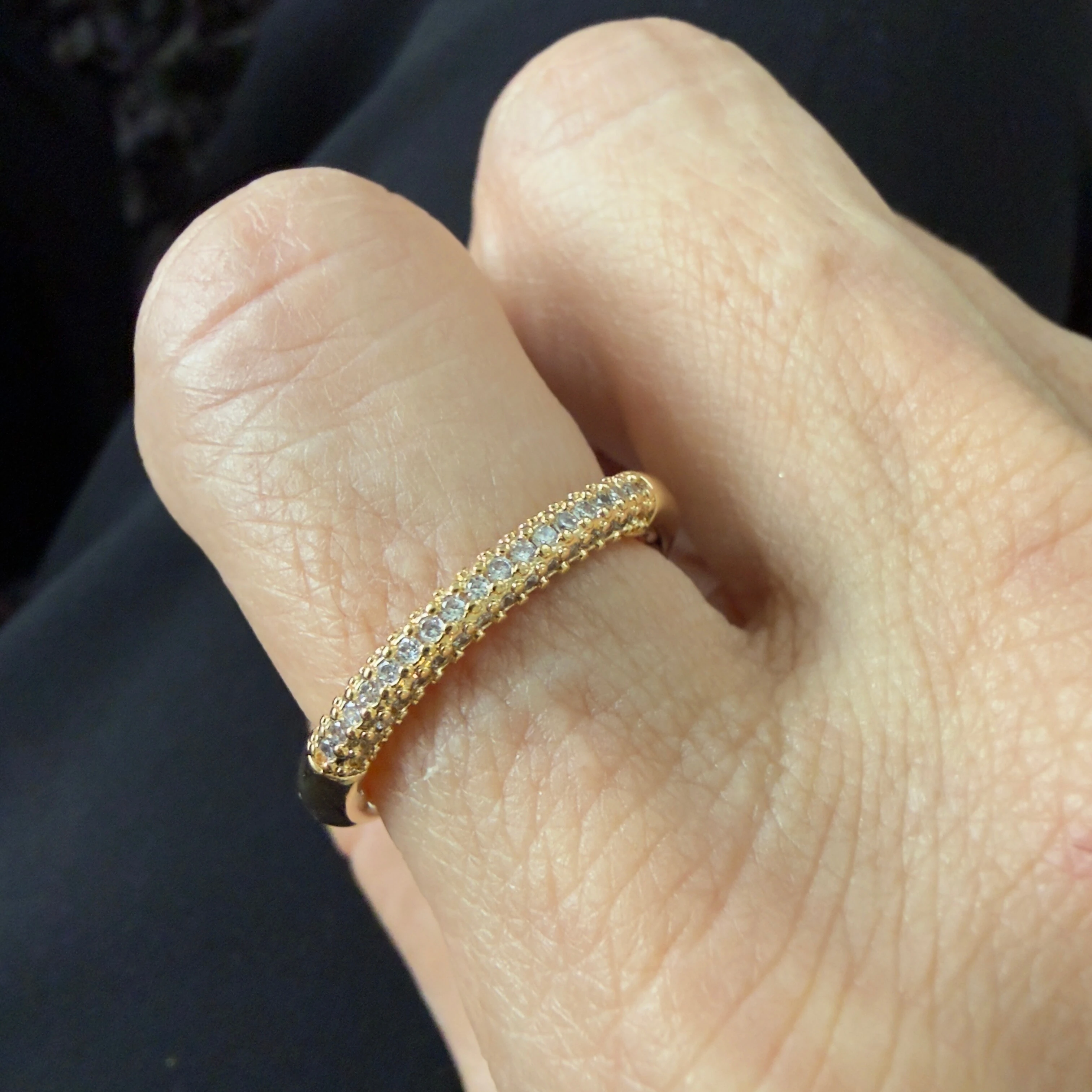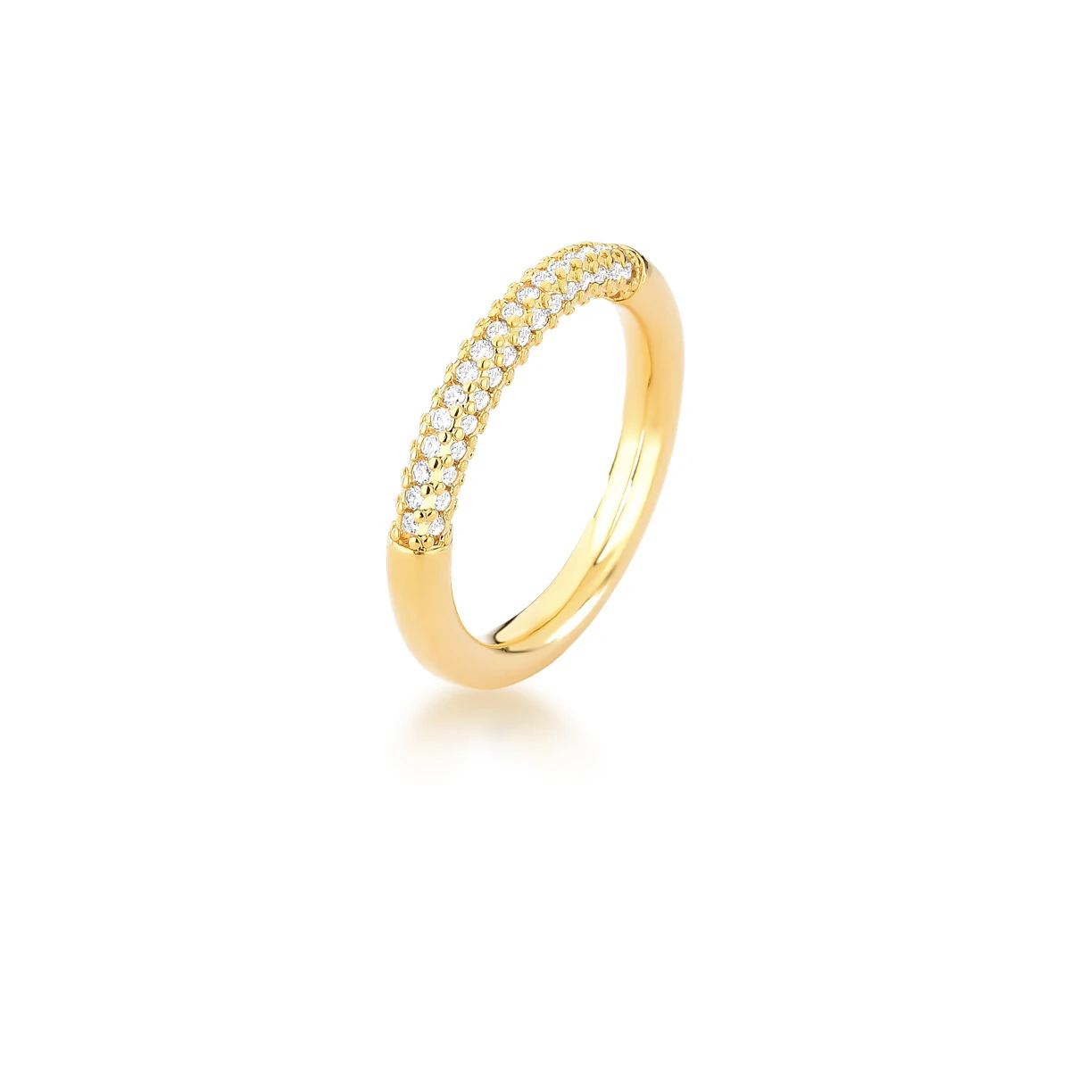 Aliança Meia Cana com Zircônias Encima em Dourado