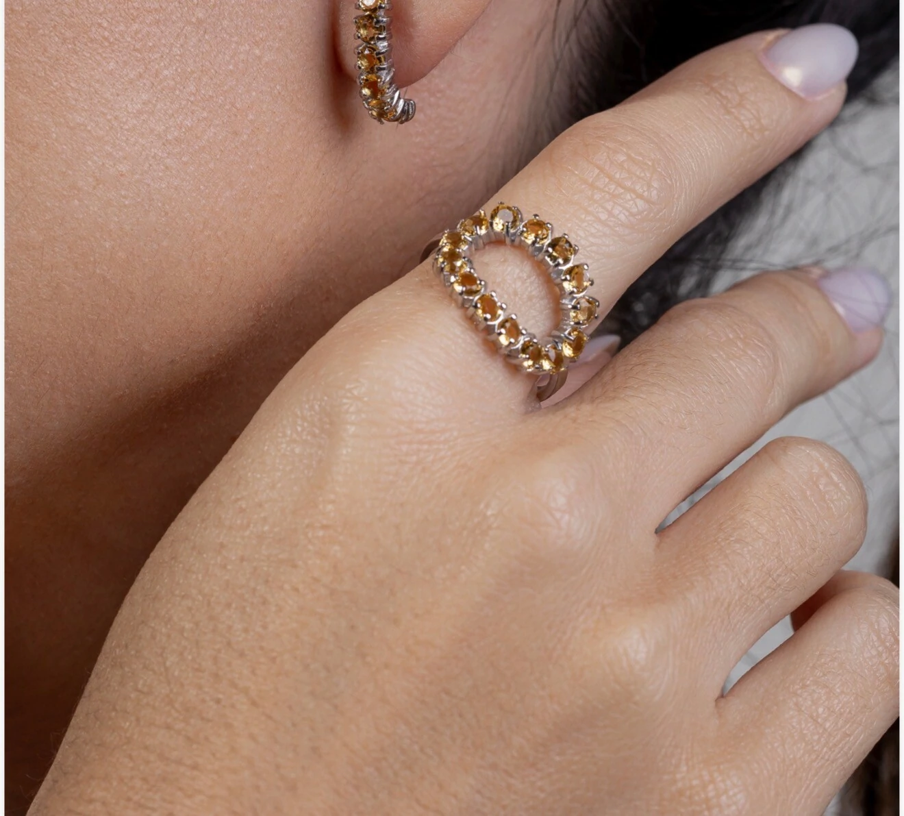 Anel Aberto em Cima com Citrinos