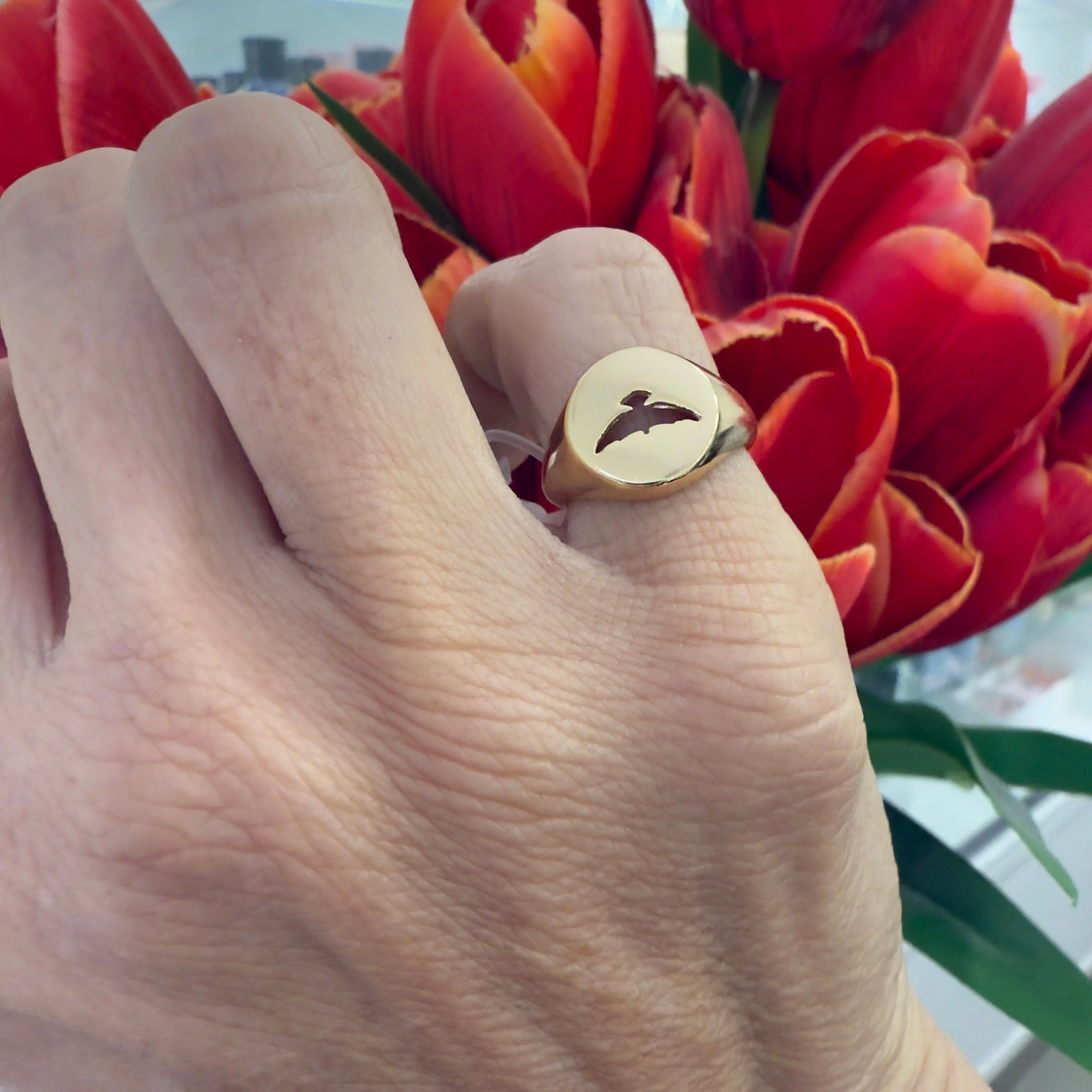 Anel Dedinho com Espírito Santo Vazado em Dourado