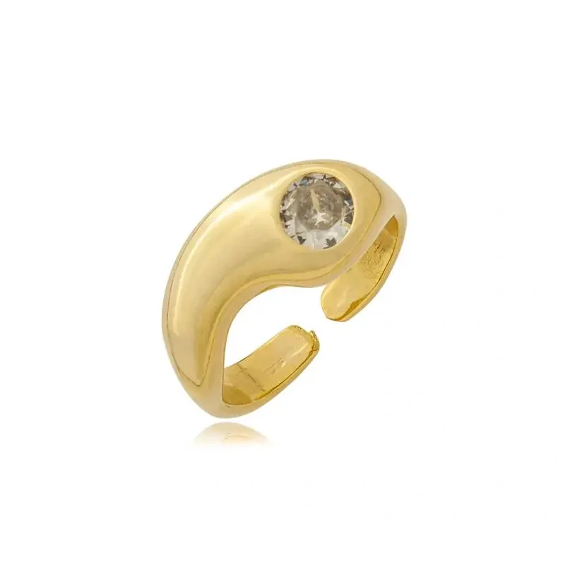 Anel Dedinho com Zircônia Orgânico em Dourado