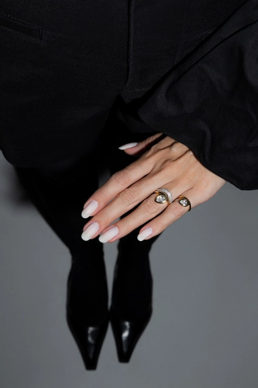 Anel Abaulado Croissant em Ródio