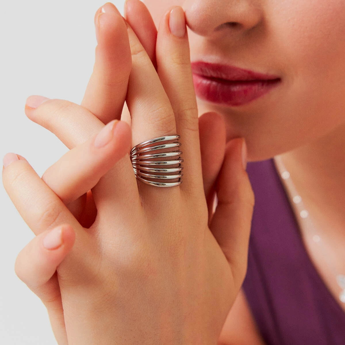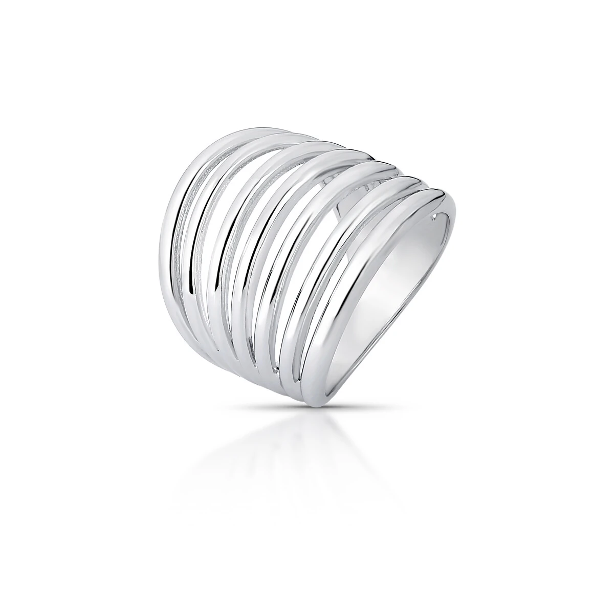 Anel Grande com Filetes Vazados em Ródio