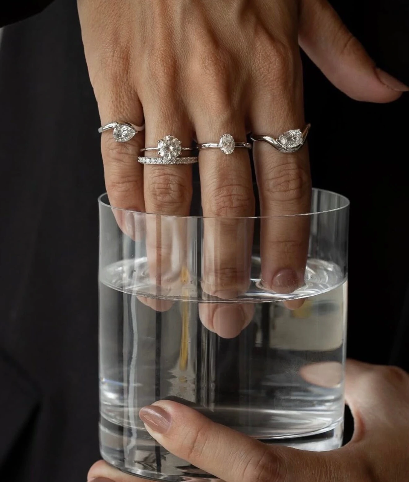 Anel Moissanite Pedra Oval 3CT e 2 Gotas em Prata 925
