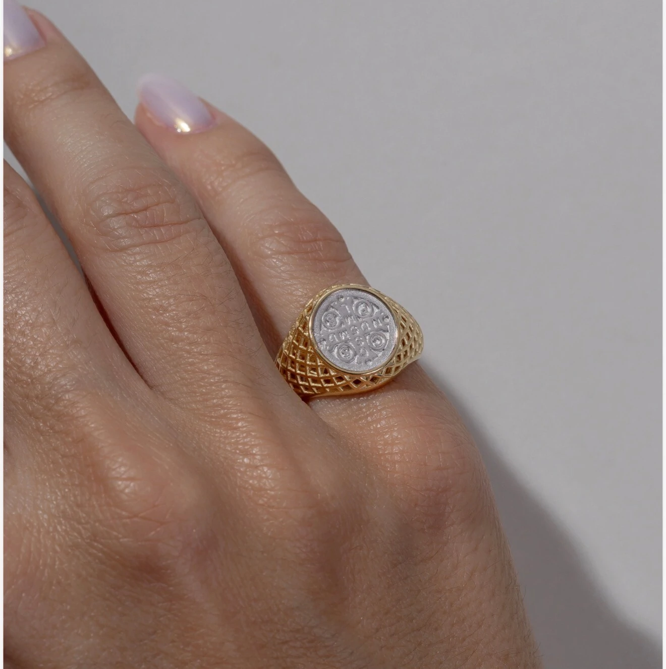 Anel Fininho com Zircônias e Lacinho em Dourado