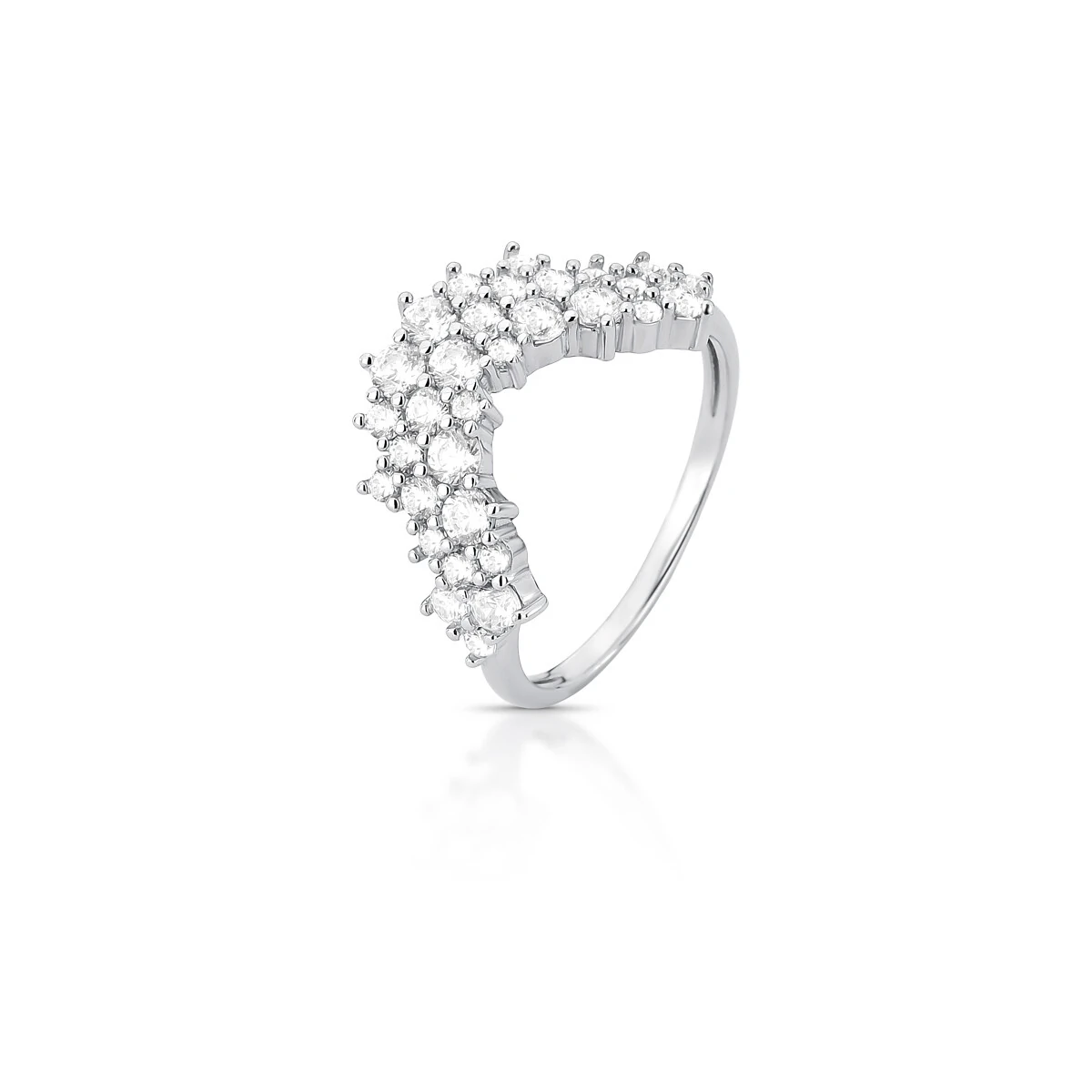 Anel com 2 Ondas e 2 Zircônias em Prata 925