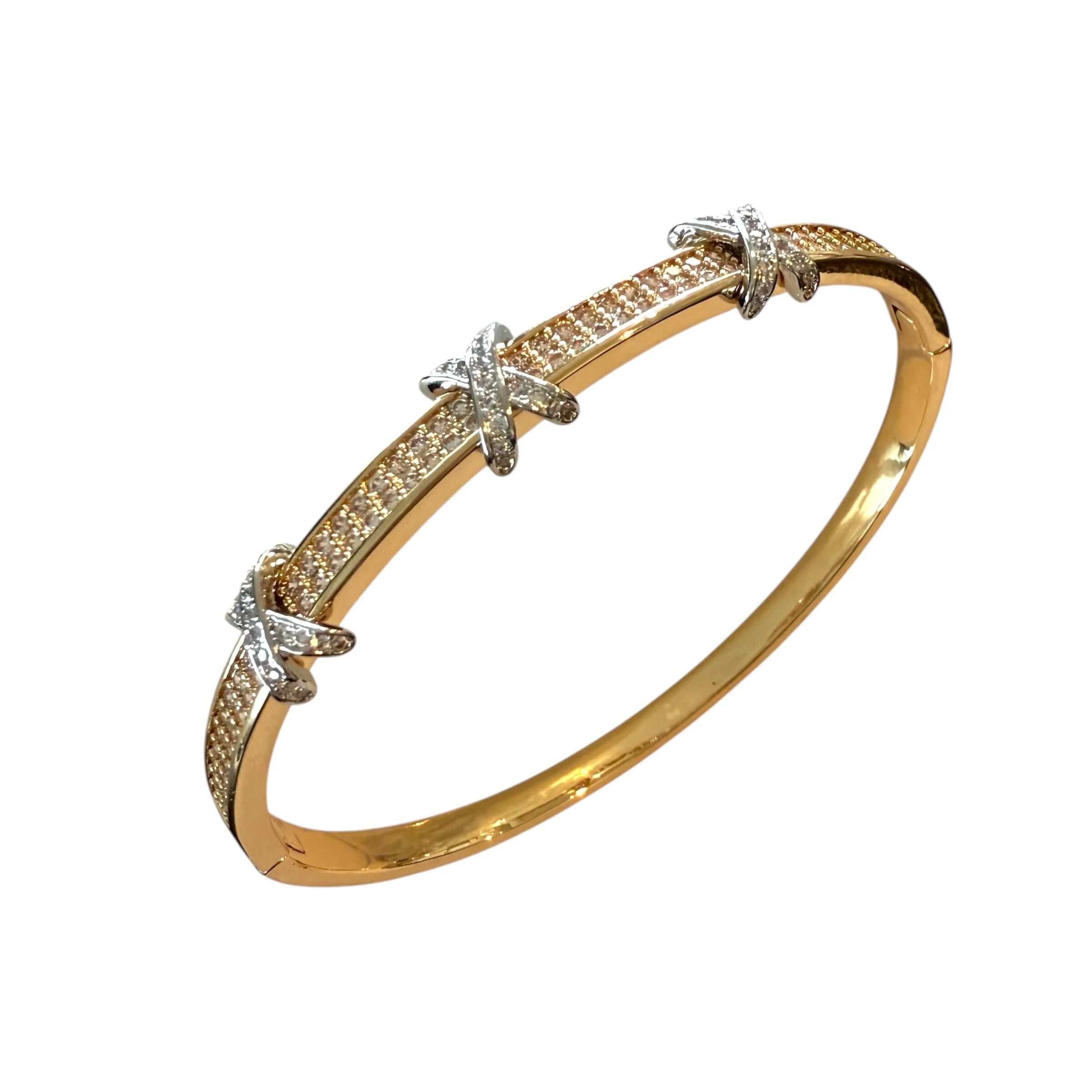 Bracelete com X Em Ródio Cravejado com Zircônias em Dourado