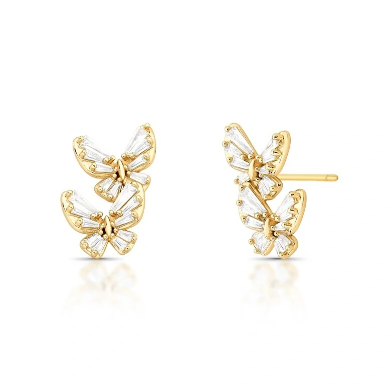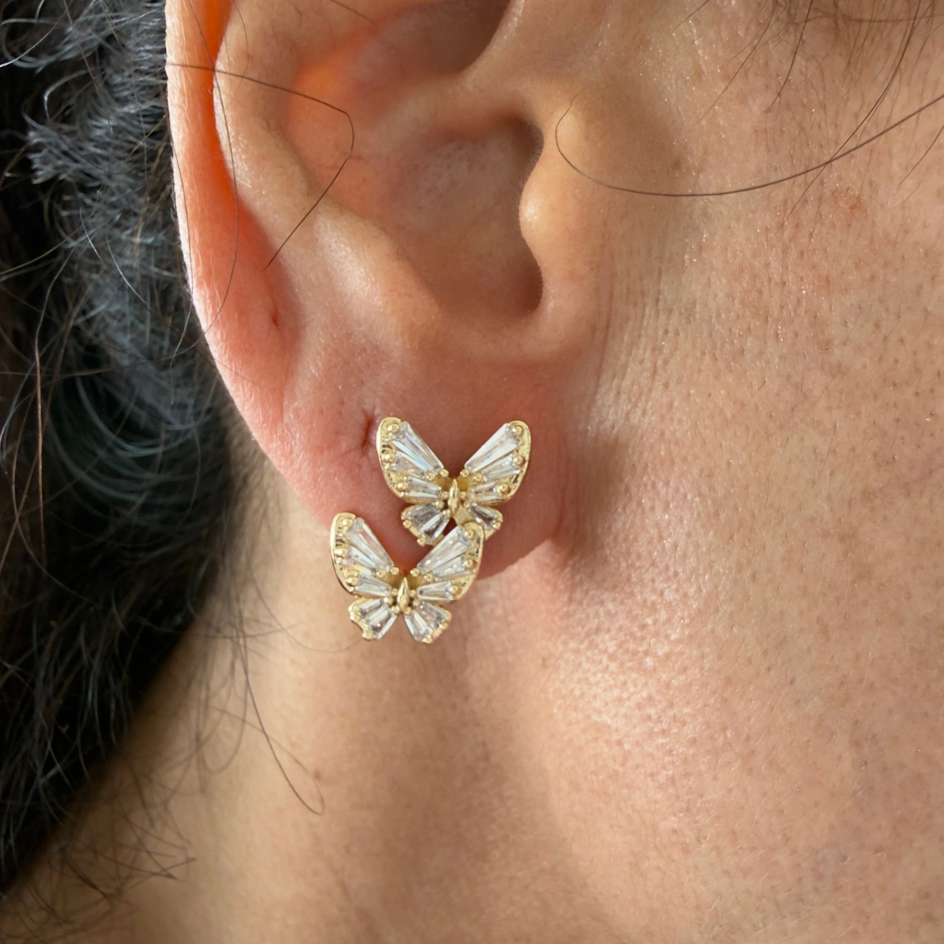 Brinco 2 Borboletas com Zircônias em Dourado