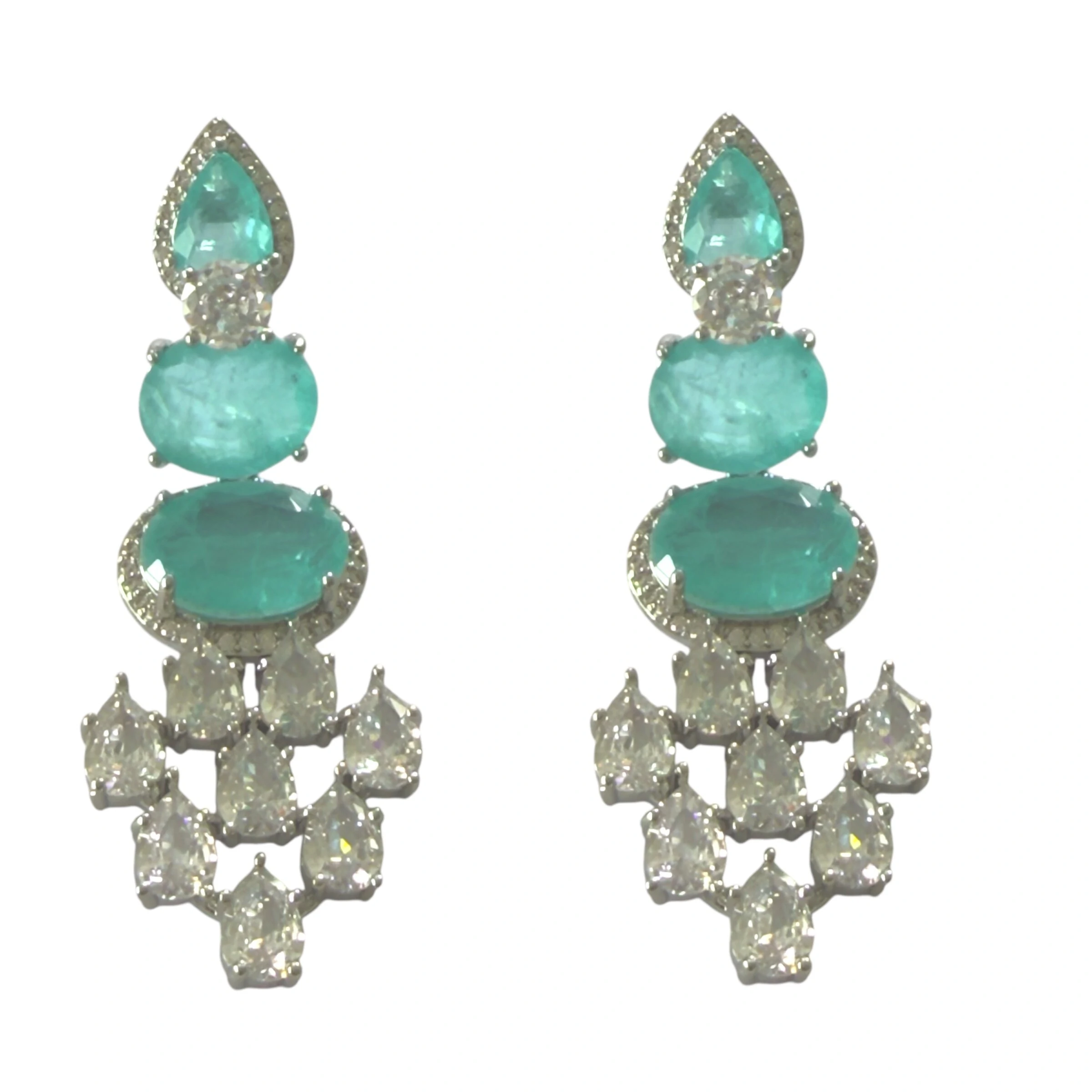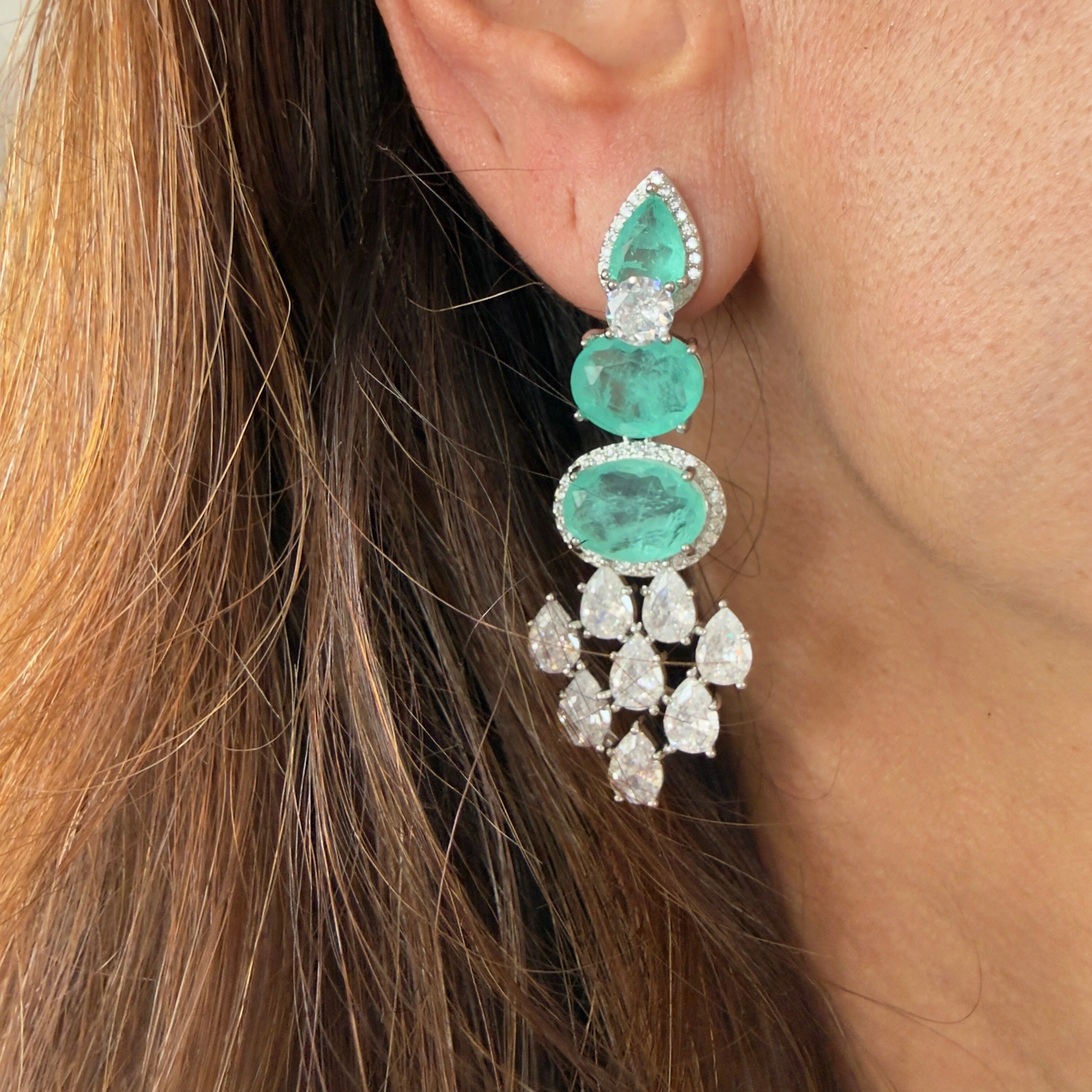 Brinco 3 Paraíbas Fusion com Gotas de Zircônias em Ródio