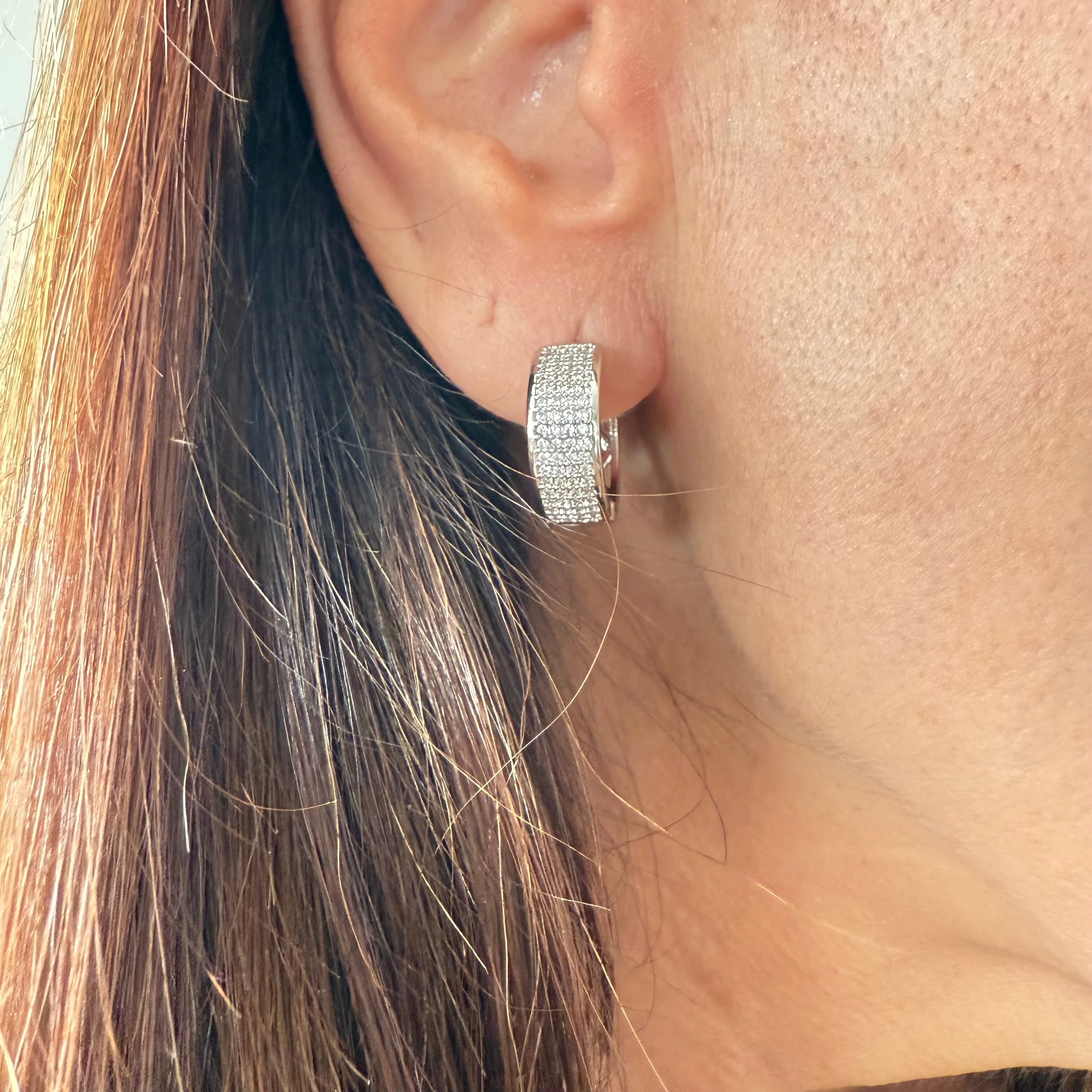 Brinco Argola Chata Cravejada com Zircônias em Ródio