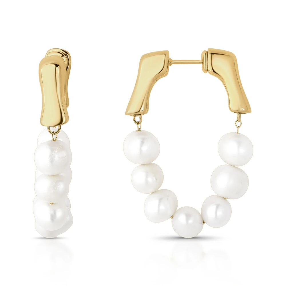 Brinco Orgânico com Madrepérola Branca dentro em Ródio