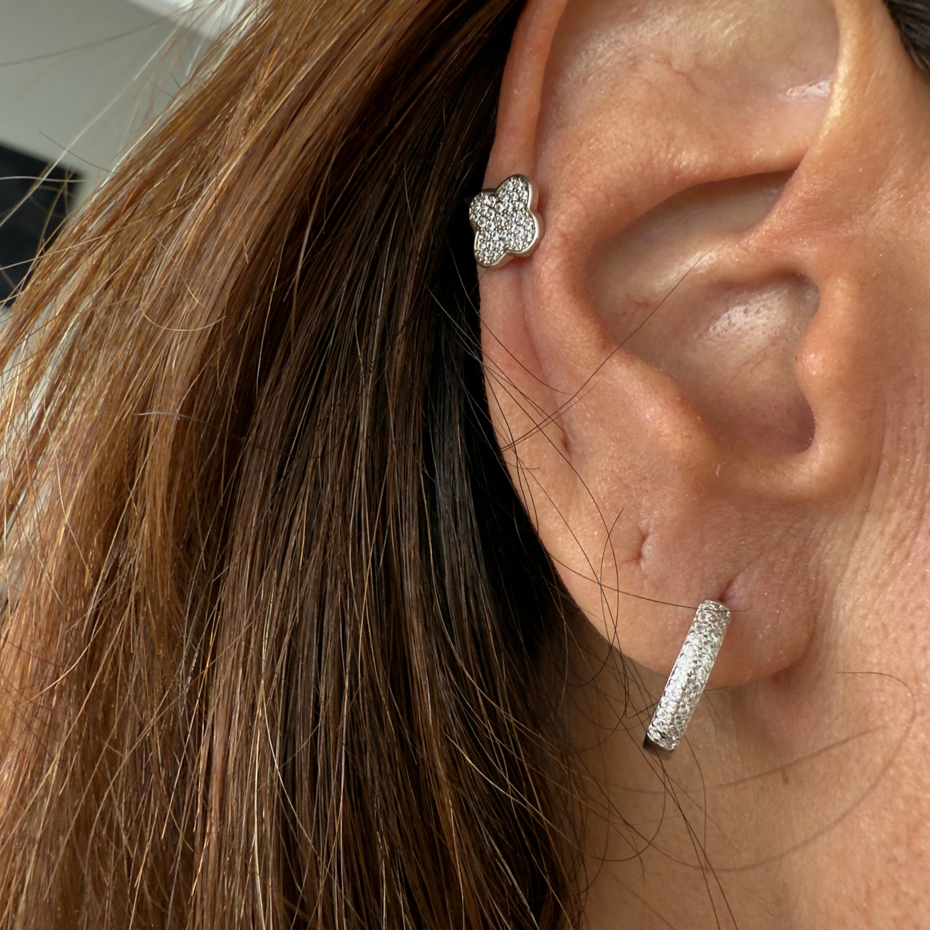Brinco Argola Cravejado Frente com Zircônias em Ródio
