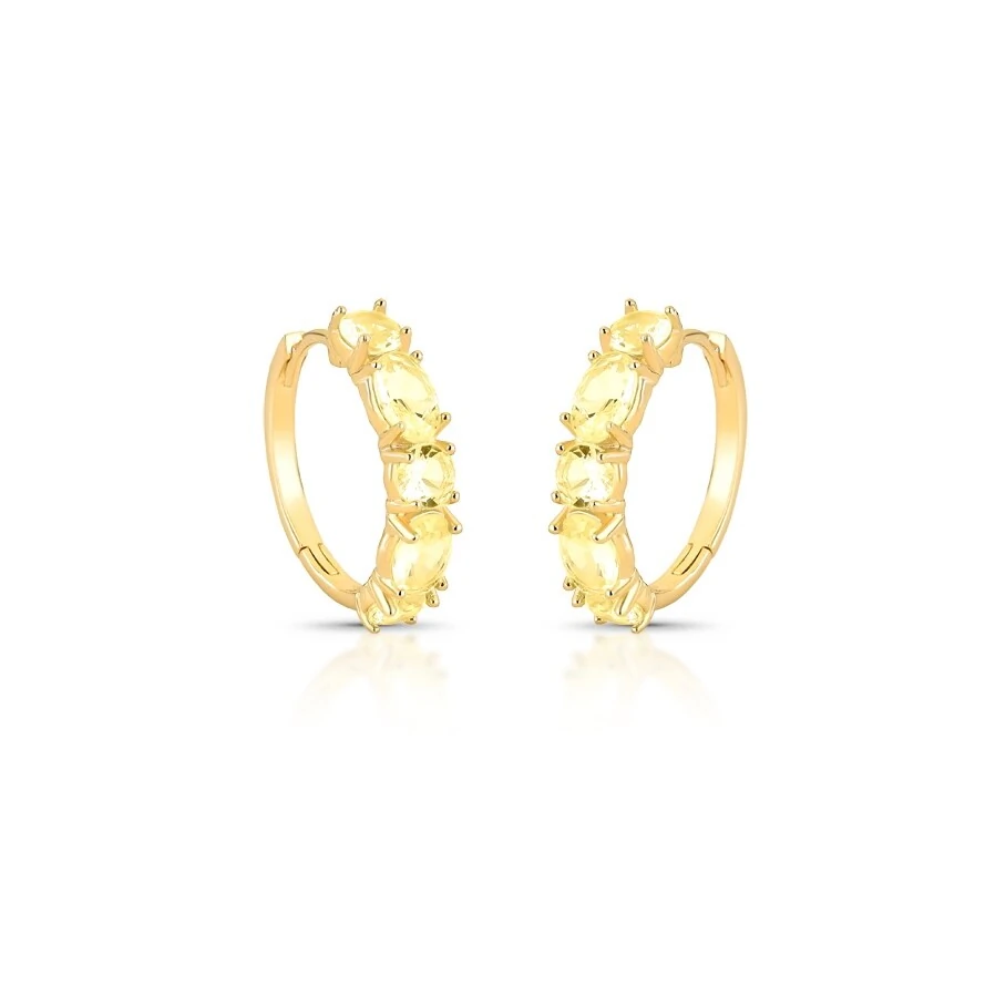 Brinco Argola Média Cravejada com Citrino em Dourado
