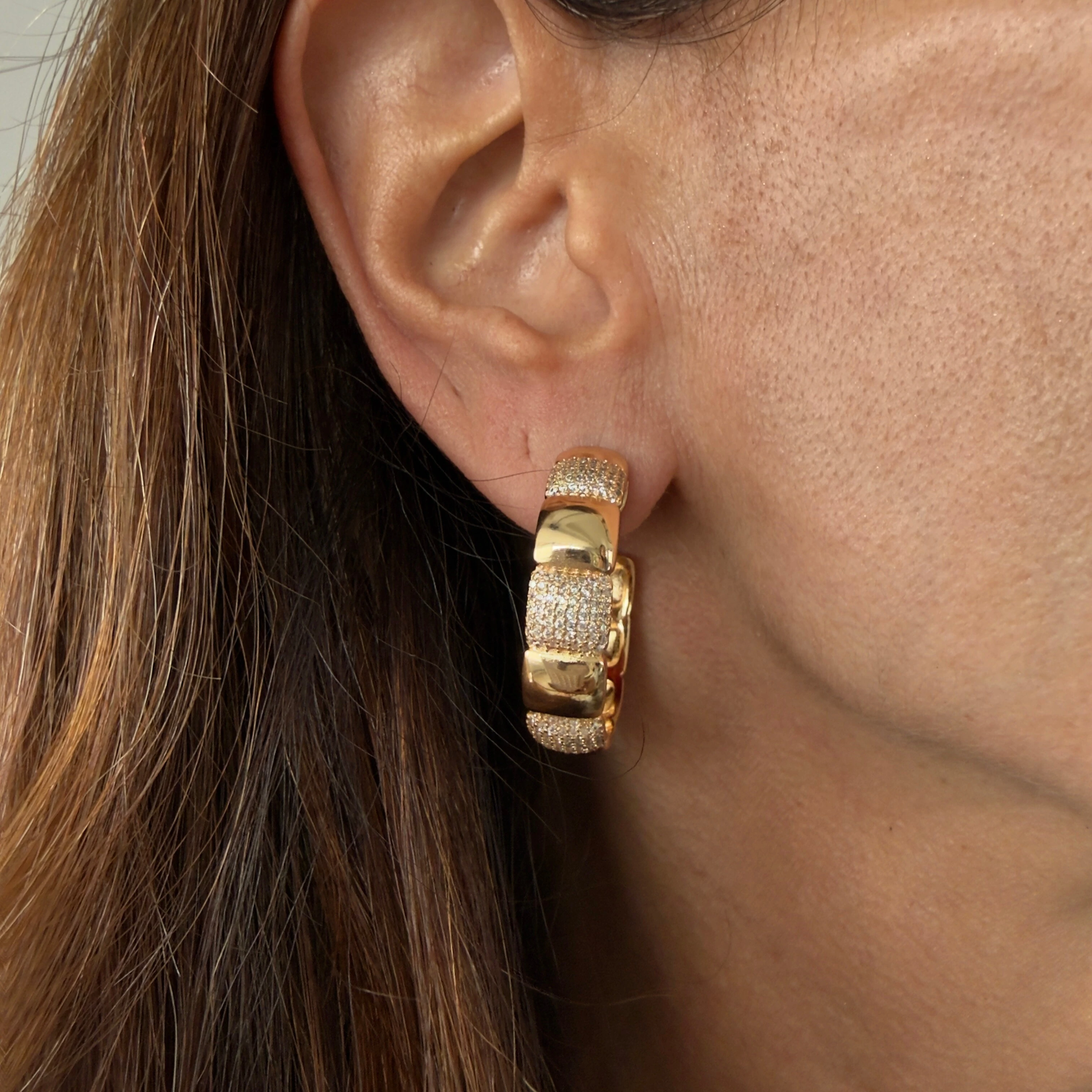 Brinco Elo Gucci com Base Cravejada com Zircônias em Dourado