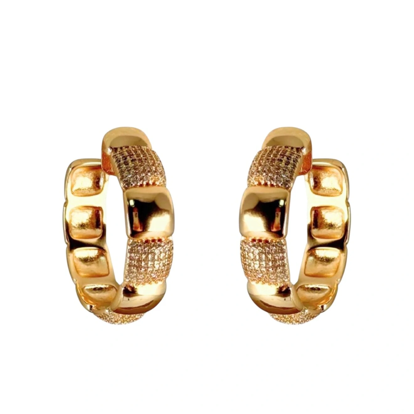 Brinco Argola Quadrados Lisos e Cravejados com Zircônias em Dourado