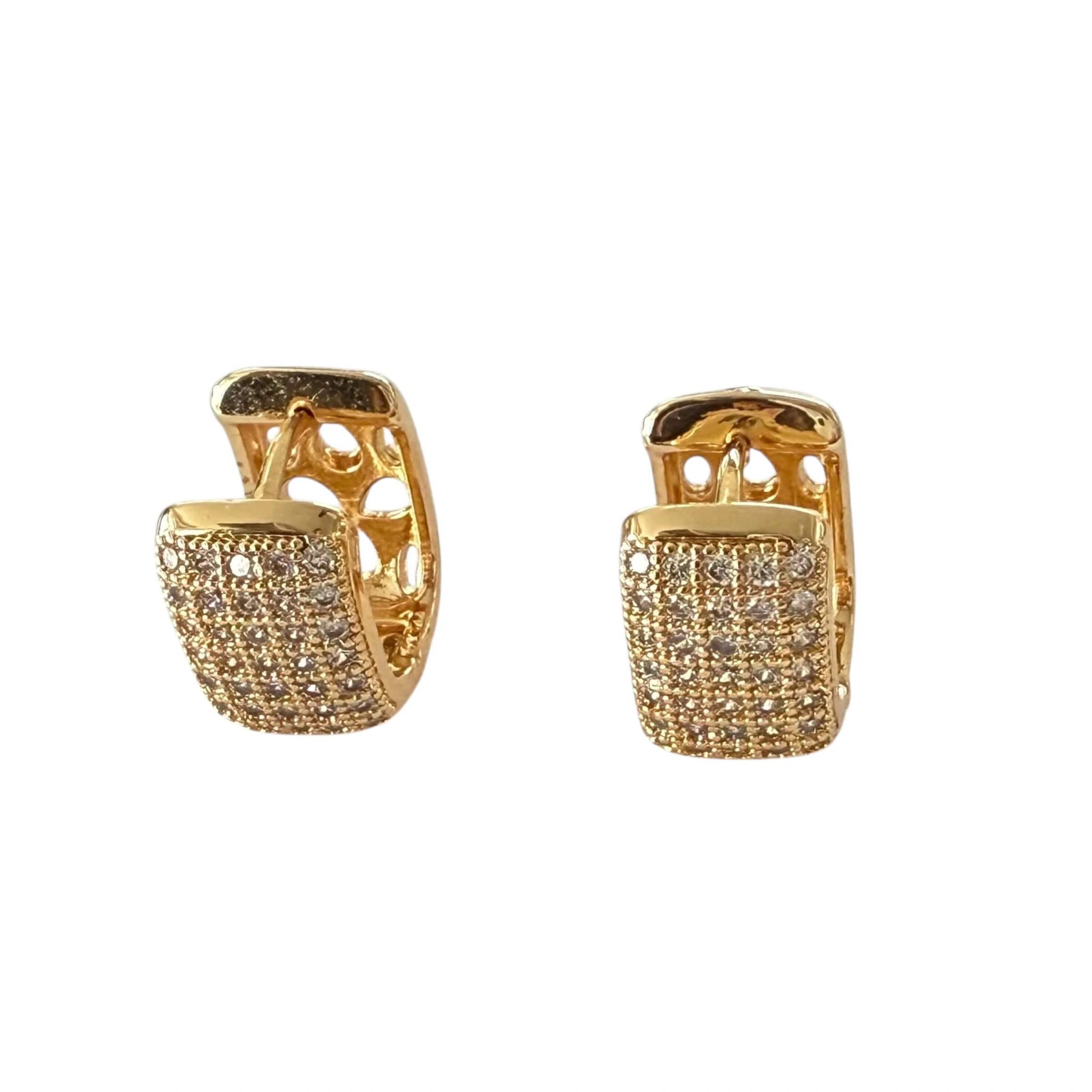 Brinco Argola Retangular Cravejada com Zircônias em Dourado