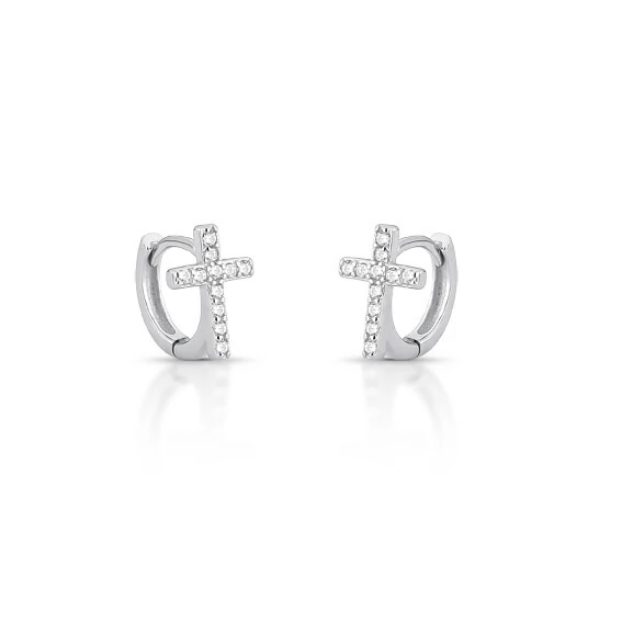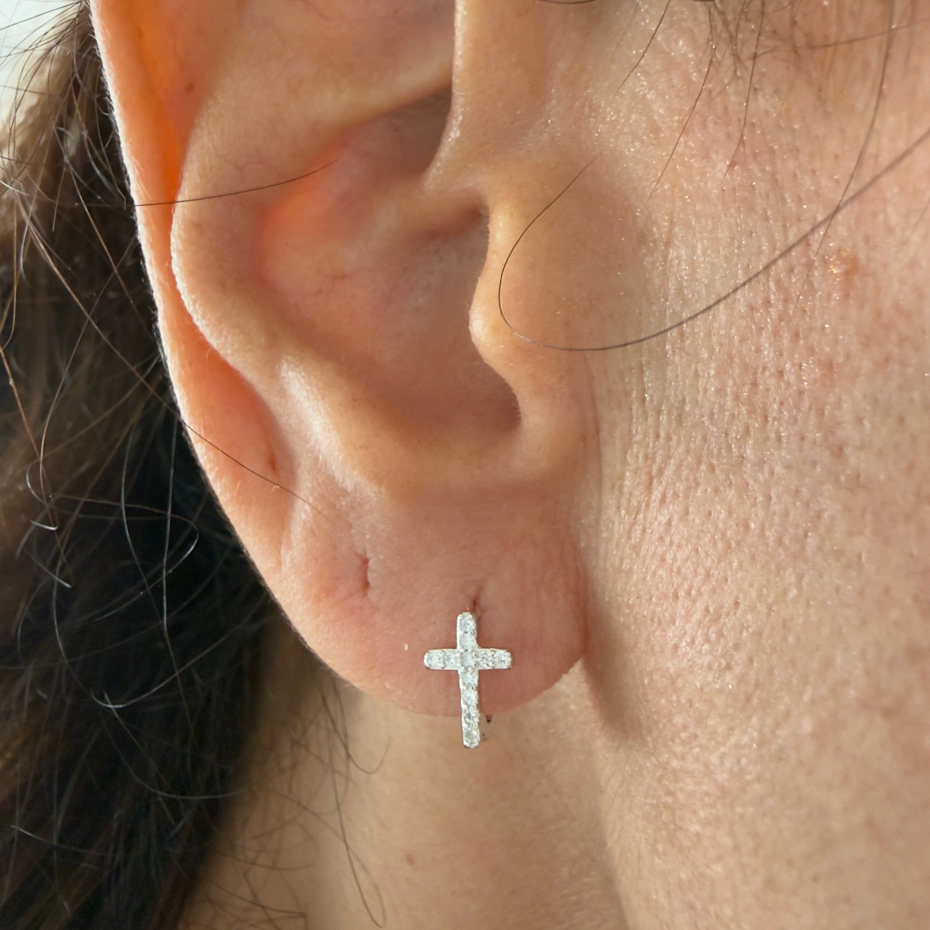 Brinco Argolinha com Cruz Cravejada de Zircônias em Prata 925