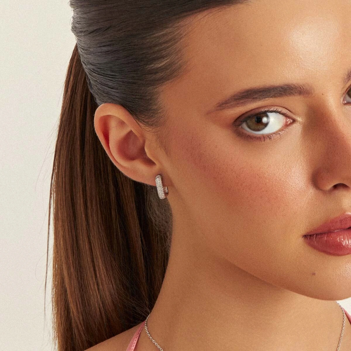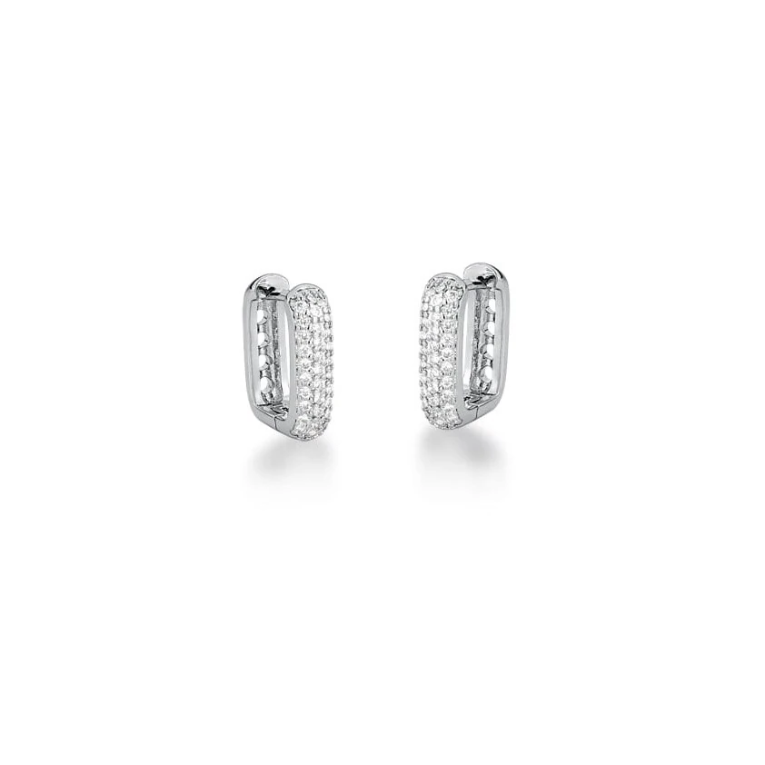 Brinco Argolinha Retangular Cravejado com Zircônias em Ródio