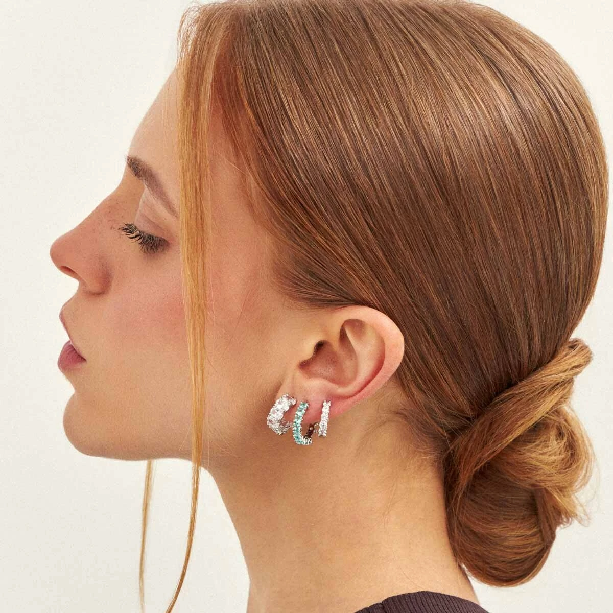 Brinco Sextavado Cravejado com Zircônias em Ródio
