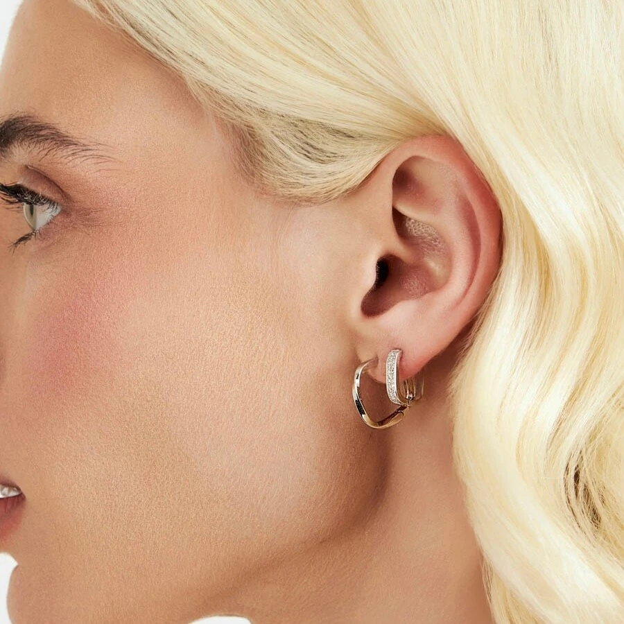 Brinco Argolinha com X e Zircônias Baguetadas em Dourado