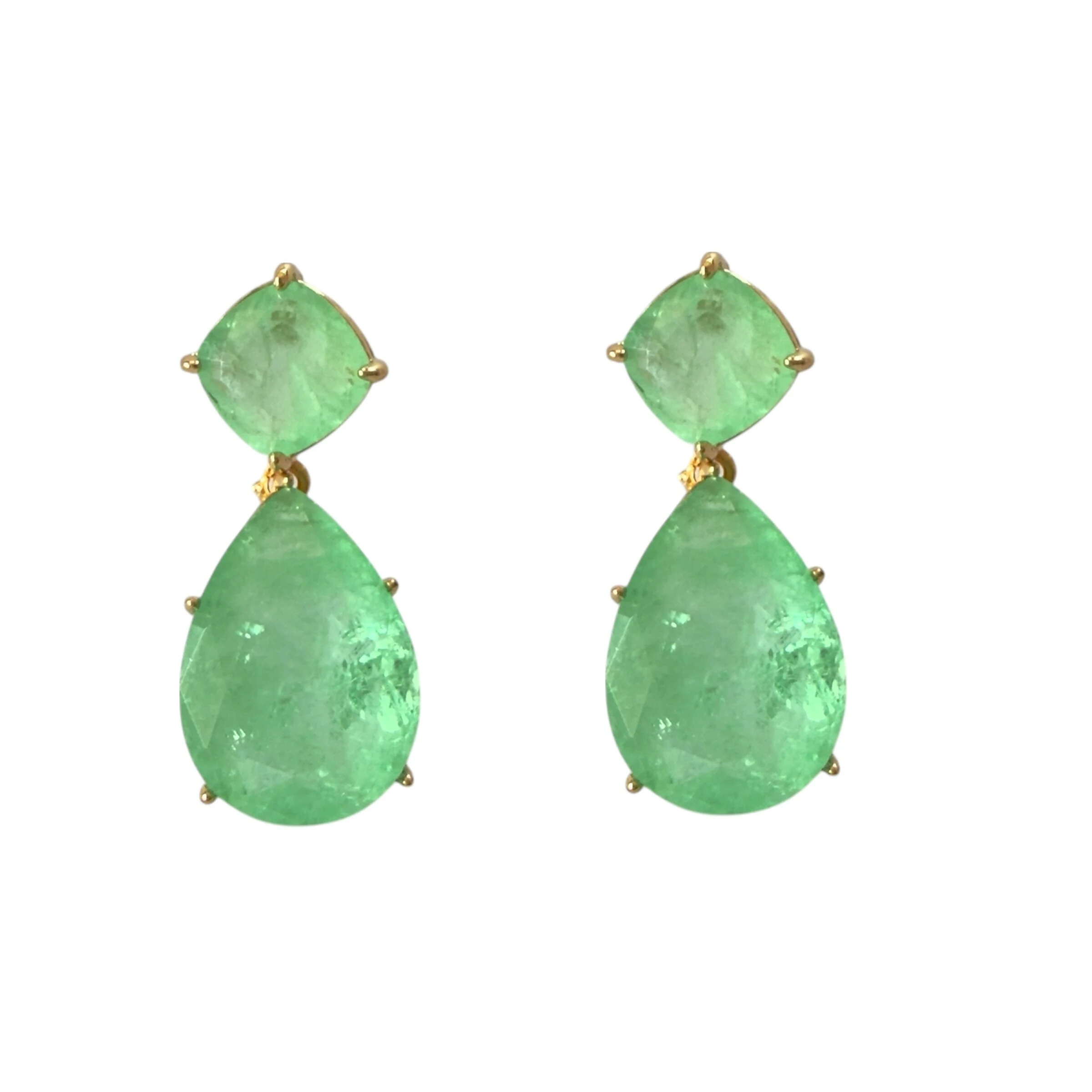 Brinco Base Retangular e Gota Paraíba em Dourado