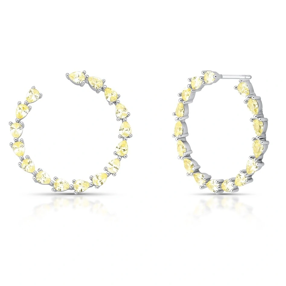Brinco Circulo Vazado Gotas de Citrino em Ródio