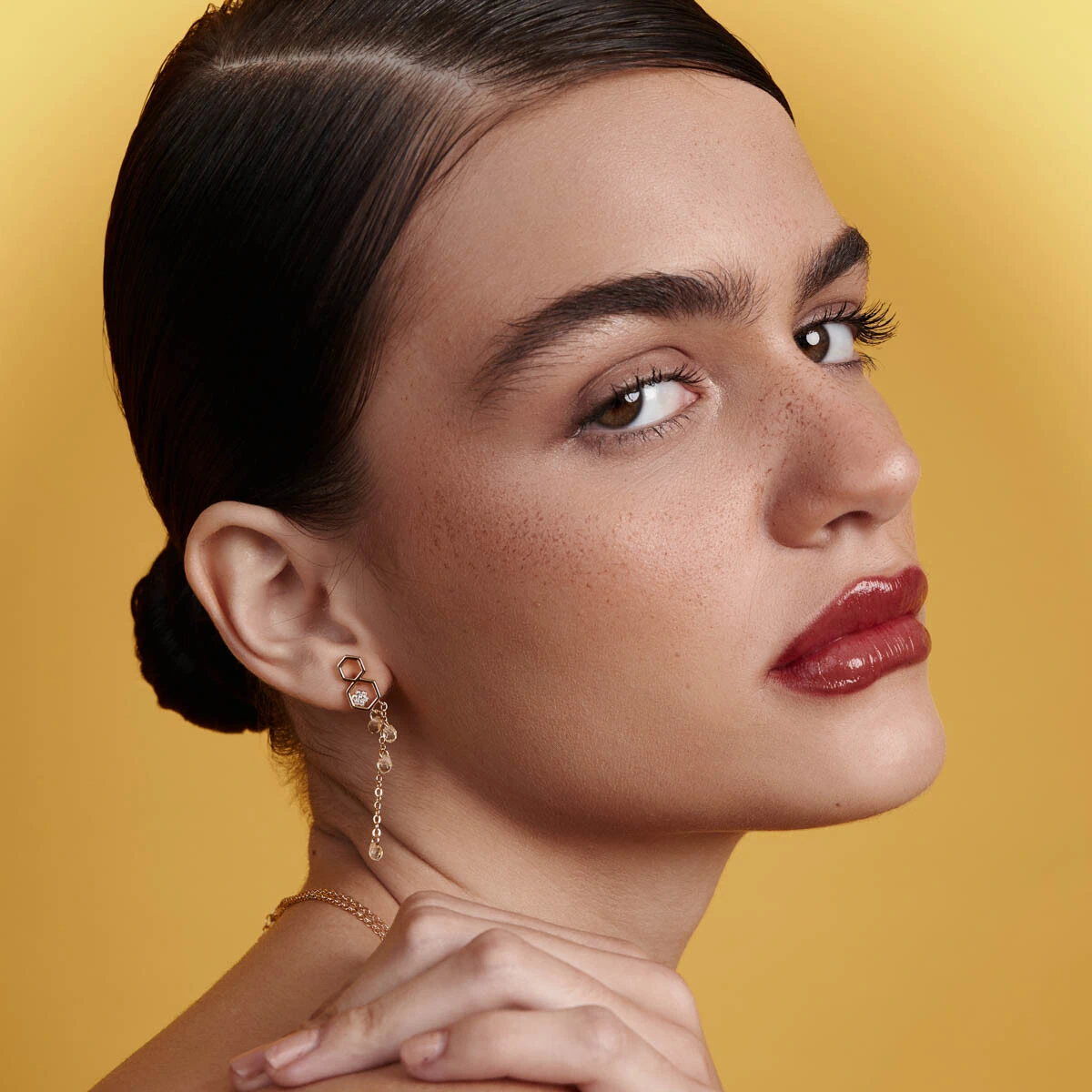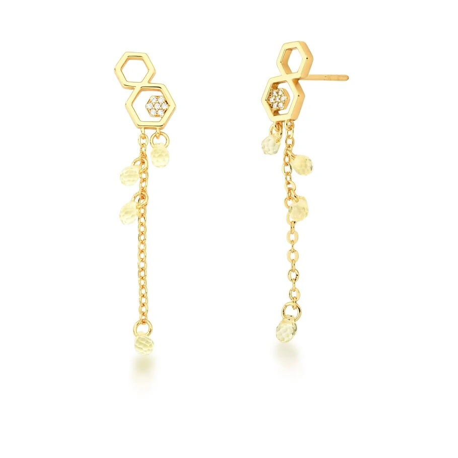 Brinco Colmeia com Cristais Pendurados em Dourado