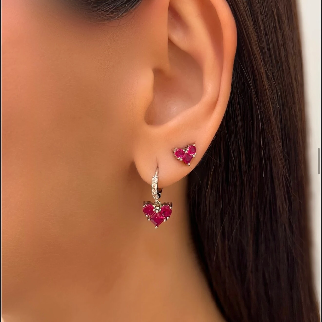 Brinco Coração Colors em Ródio
