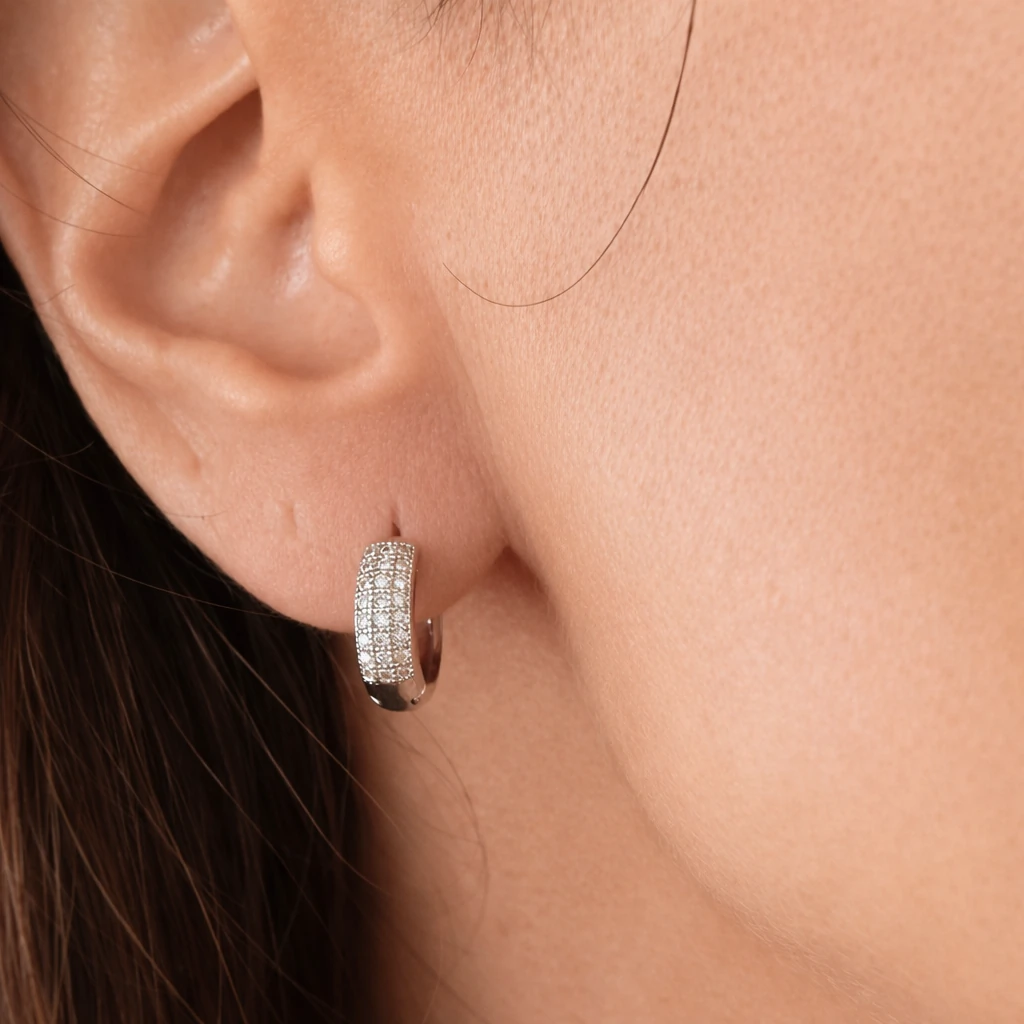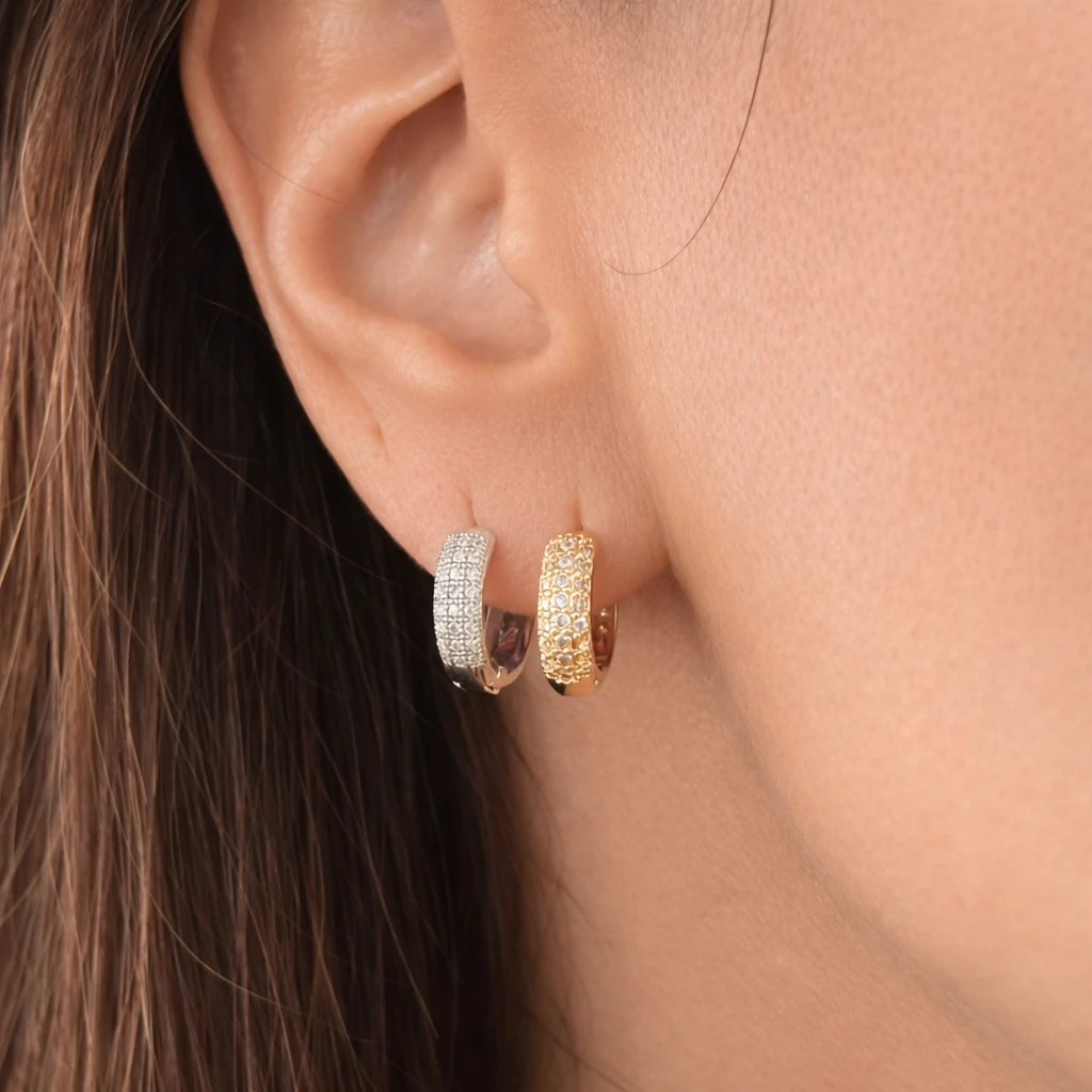 Elegante e atemporal, este brinco de argola meia cana é a escolha perfeita para quem busca sofisticação com brilho na medida certa.