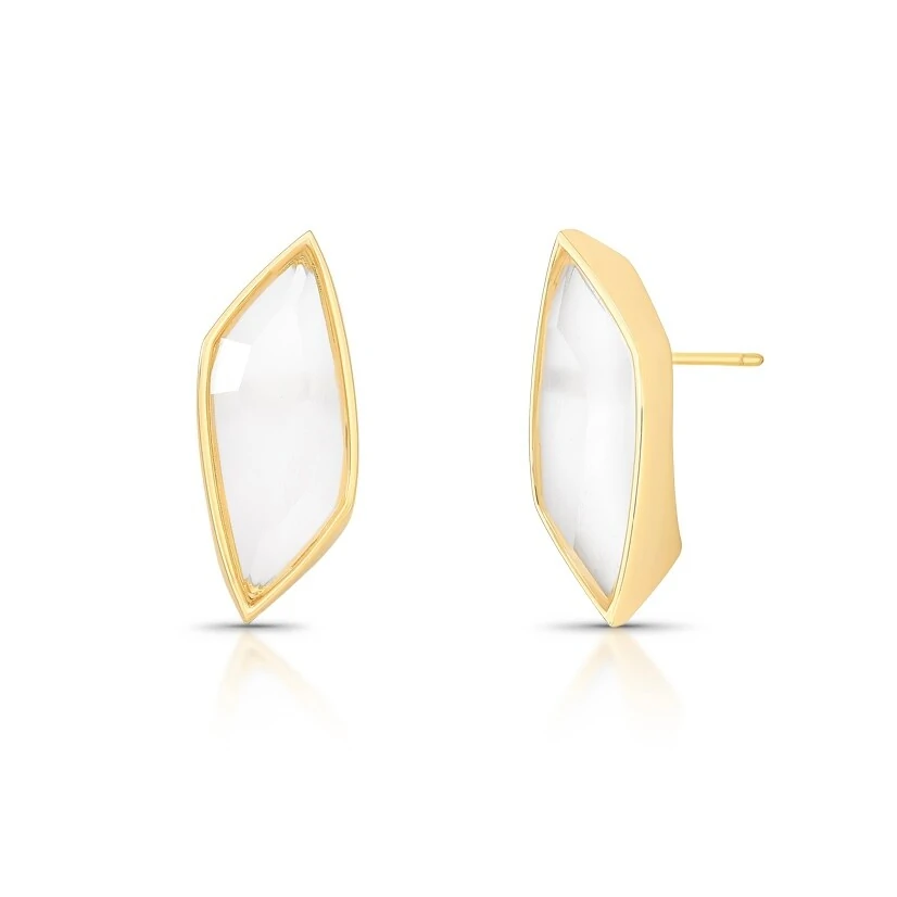 Brinco Pressão Grande com Pérola Cabochão e Zircônias em Dourado