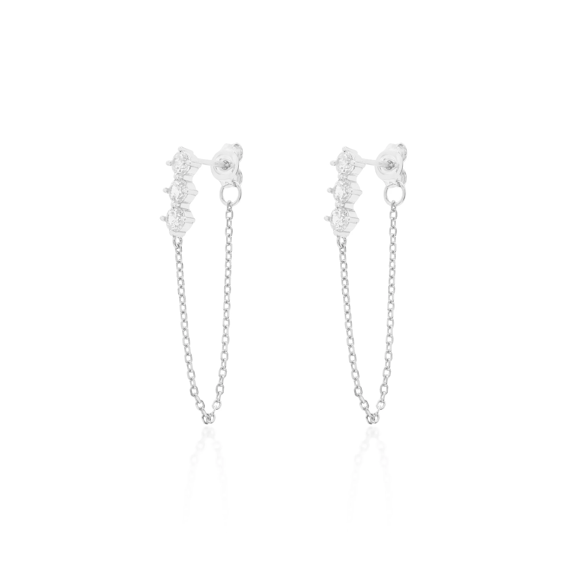 A tarraxa é presa por uma correntinha deixando o brinco mais estiloso.