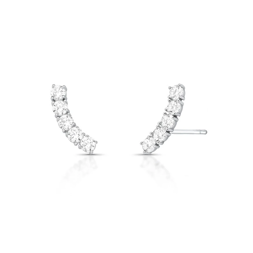 Brinco Lateral Liso e Meio Cravejado com Zircônias em Dourado