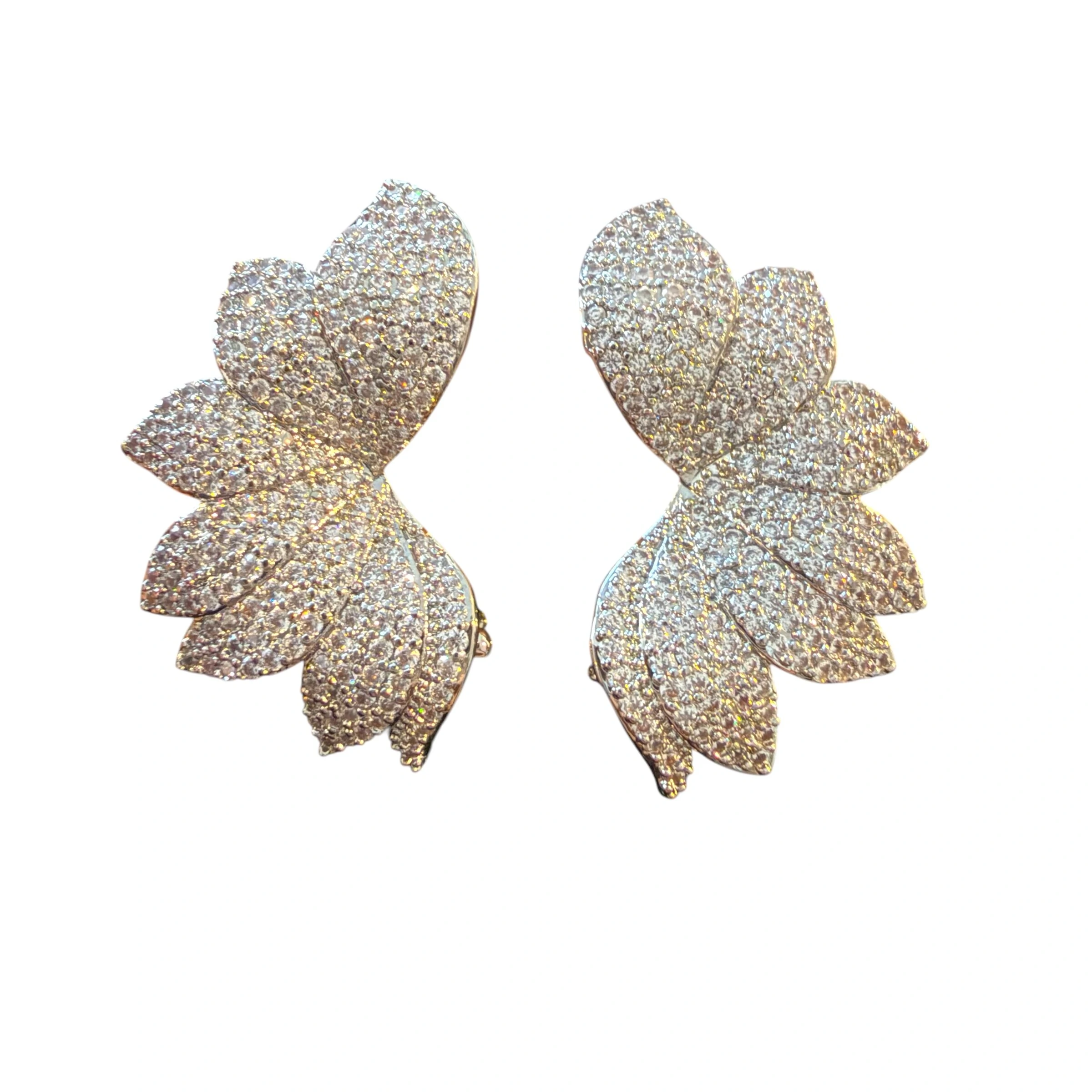 Brinco Folhas Abertas Cravejadas com Zircônias em Ródio