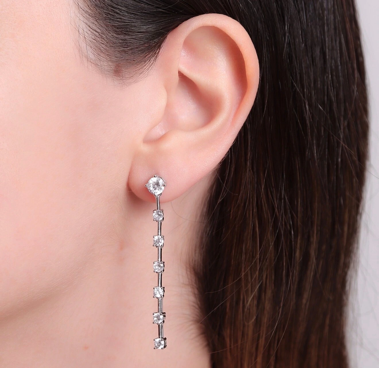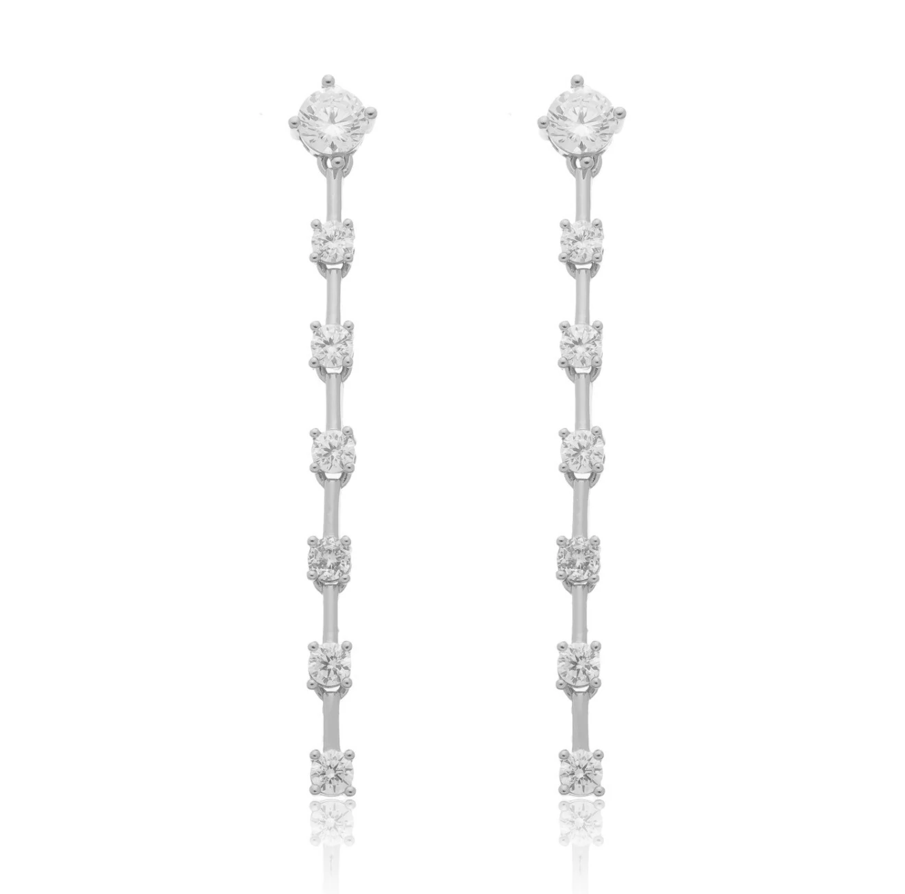 Brinco Retangular com Zircônias Baguetes em Prata 925