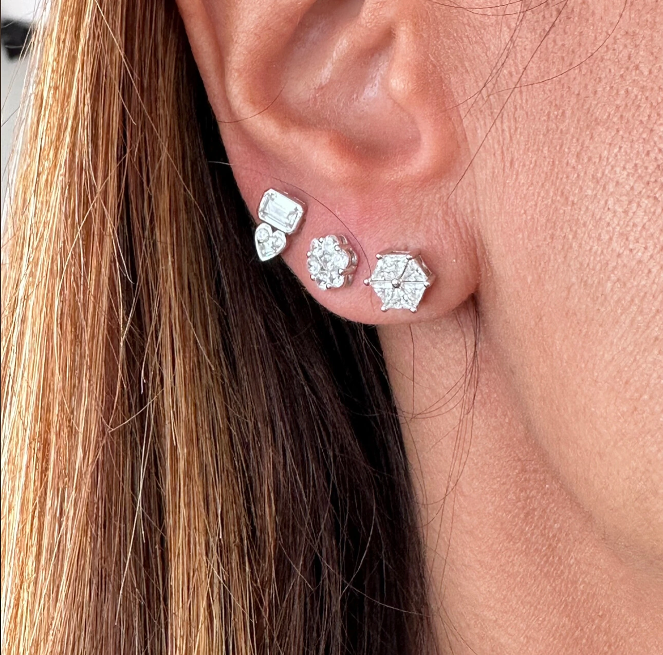 Brinco Flor 7mm 6 Pétalas Redondas de Zircônias em Prata 925