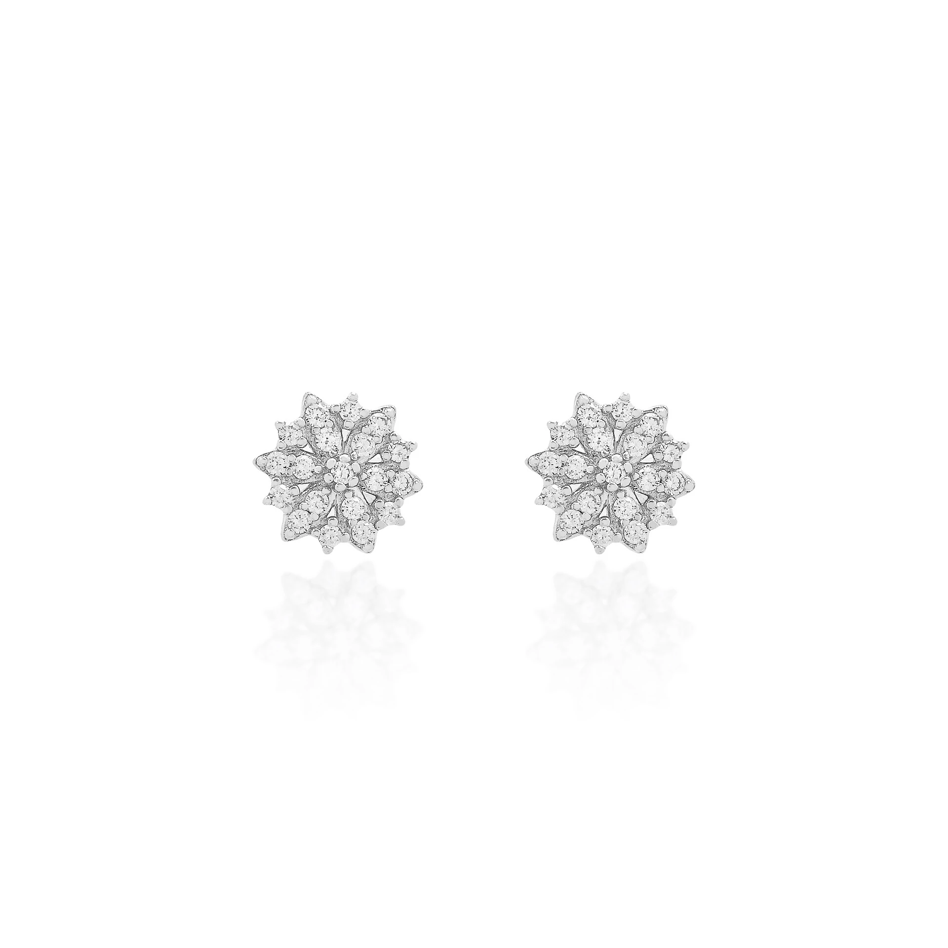 Brinco Flor Sobreposta com Zircônias em Prata 925