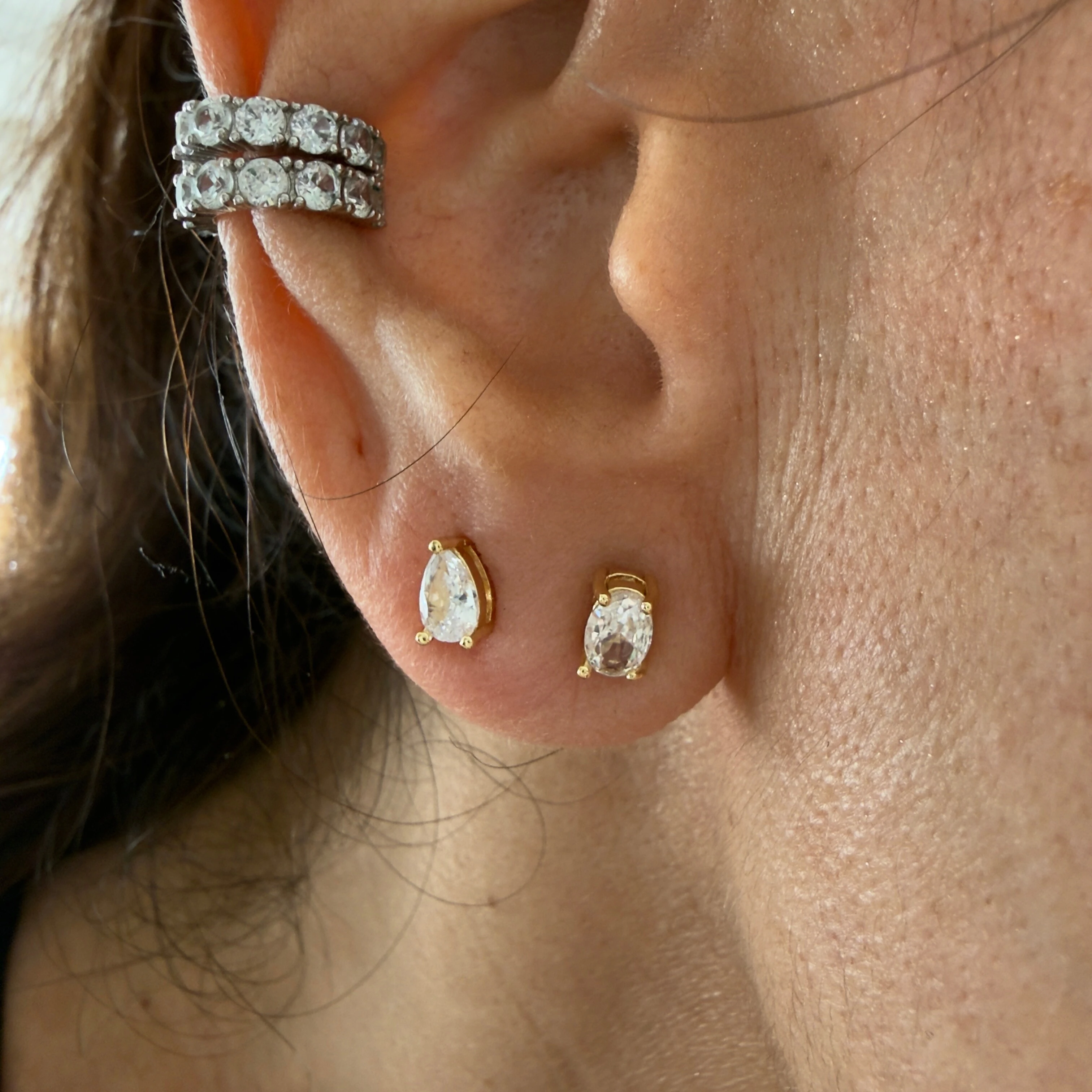 Brinco 6 Aberto Liso e Cravejado com Zircônias em Dourado