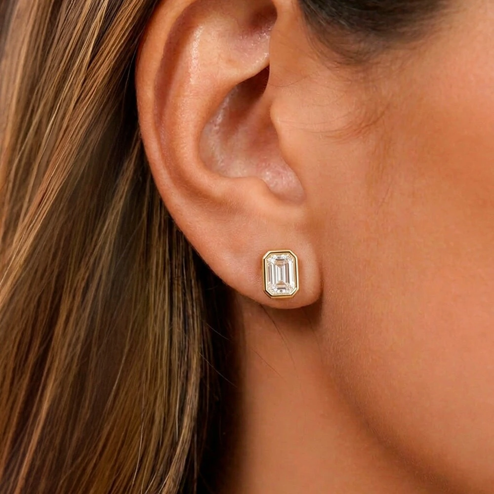 Brinco Moissanite Retangular 4ct – 6,8 mm Banhado a Ouro 18k