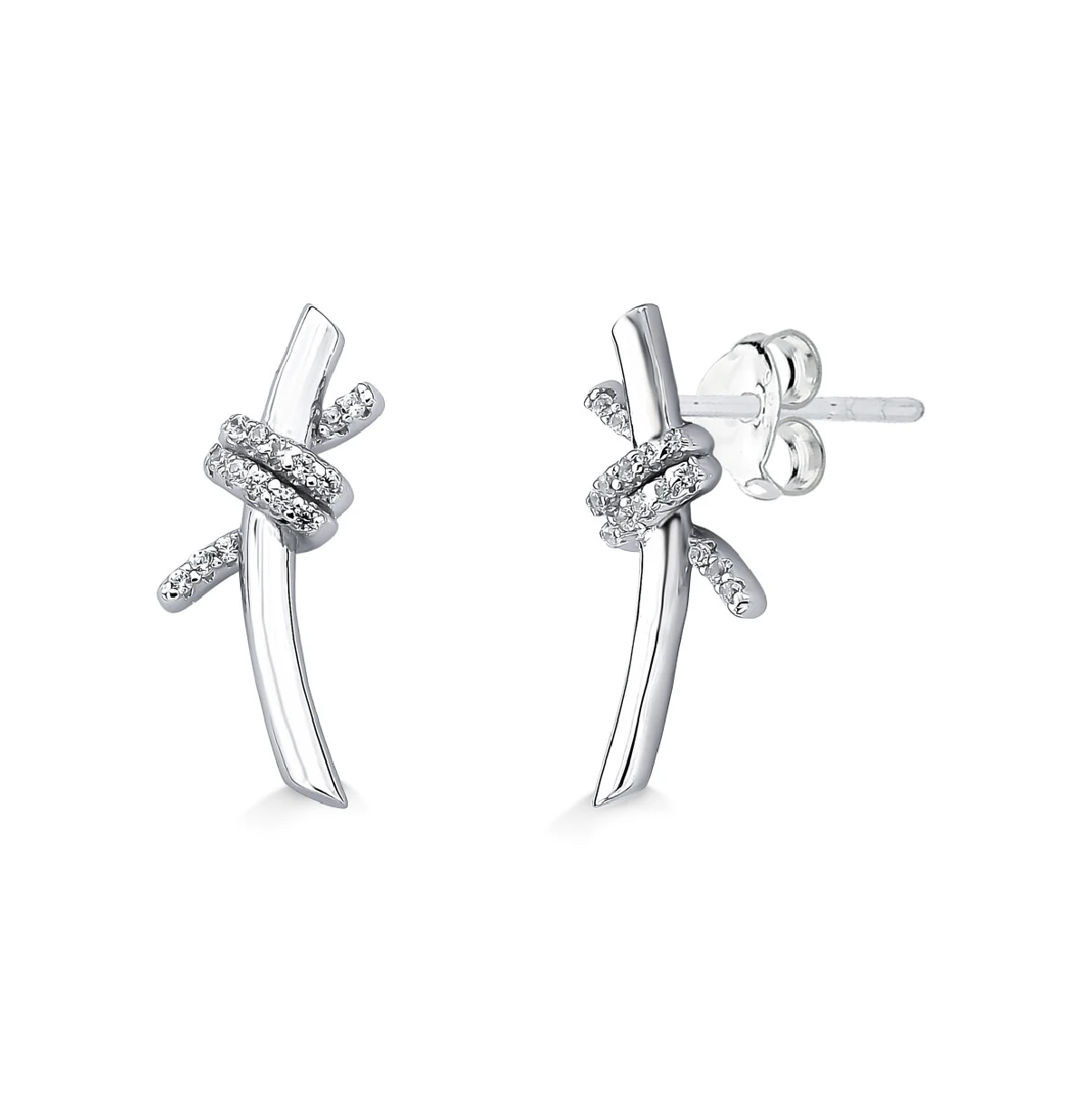 Brinco Nó Liso e Cravejado com Zircônias em Prata 925