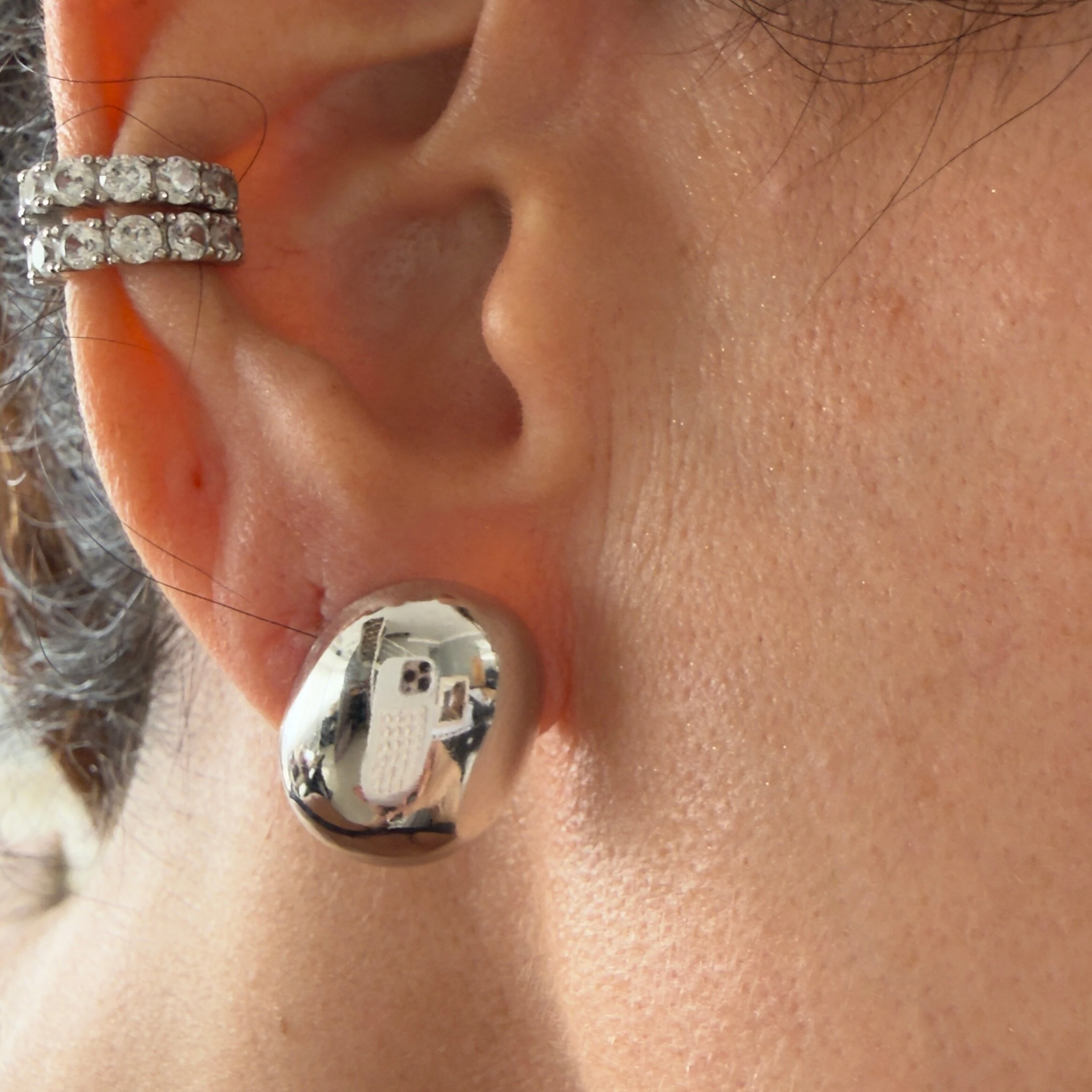 Brinco Redondo Cravejado com Zircônias em Ródio