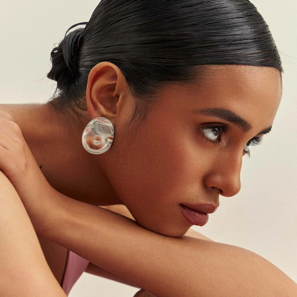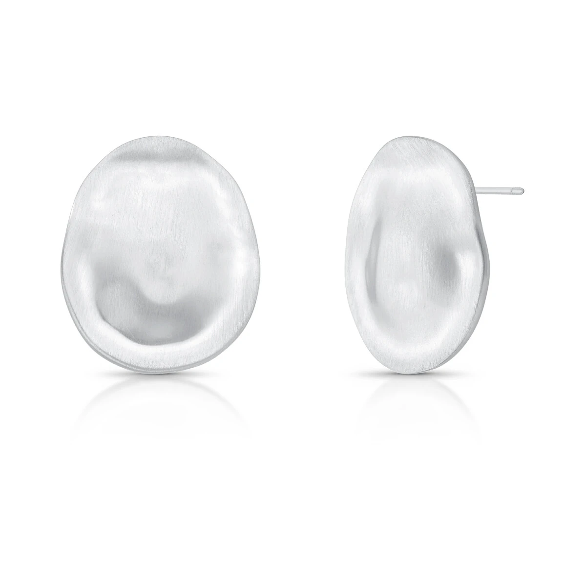 Brinco Oval Orgânico Fosco Martelado em Ródio