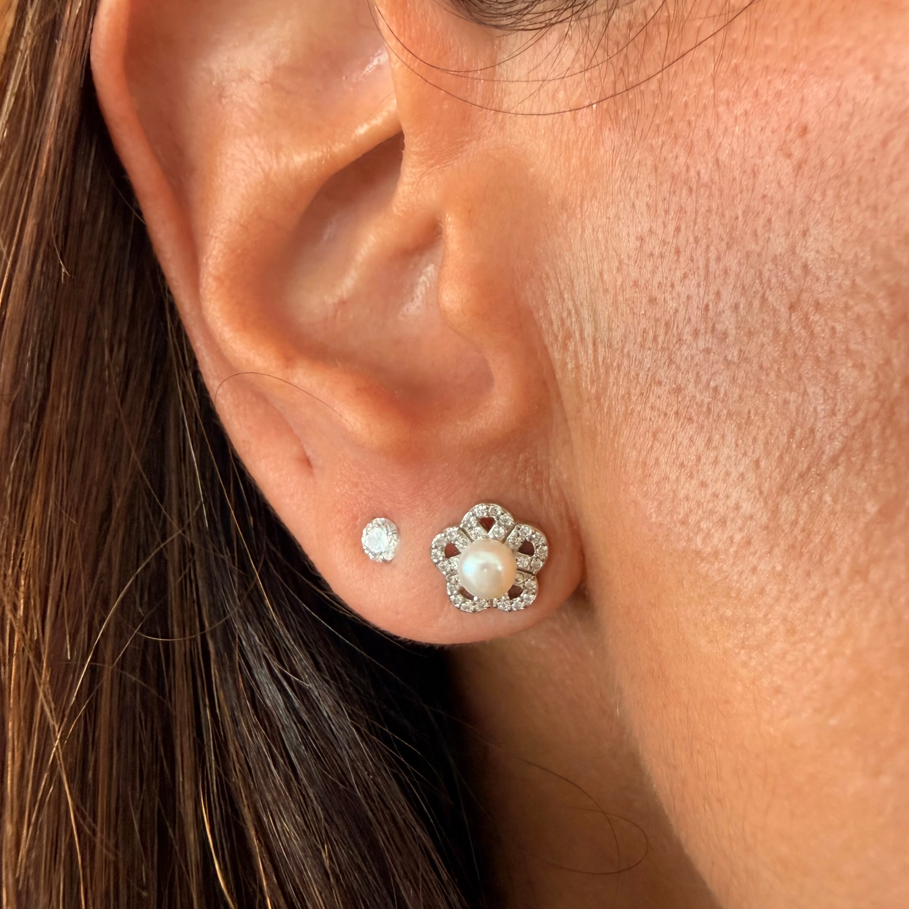 Brinco Ondas Lisas e Cravejada com Zircônias em Ródio