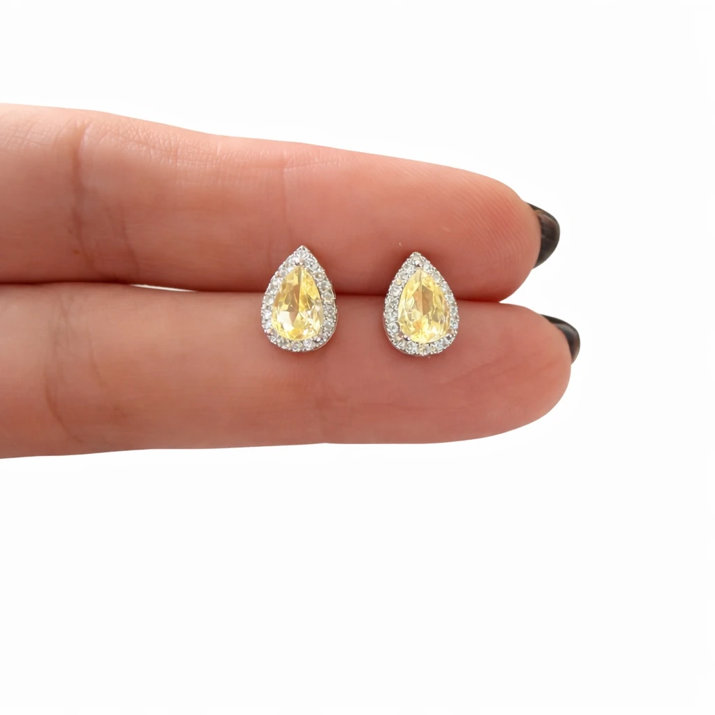 Brinco Princesa Oval Citrino com Zircônias em Ródio