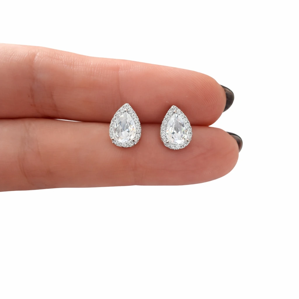 Seu design em gota, totalmente cravejado, reflete a luz com intensidade na medida certa — ideal para quem deseja um brinco versátil, que transita do dia para a noite com facilidade.
