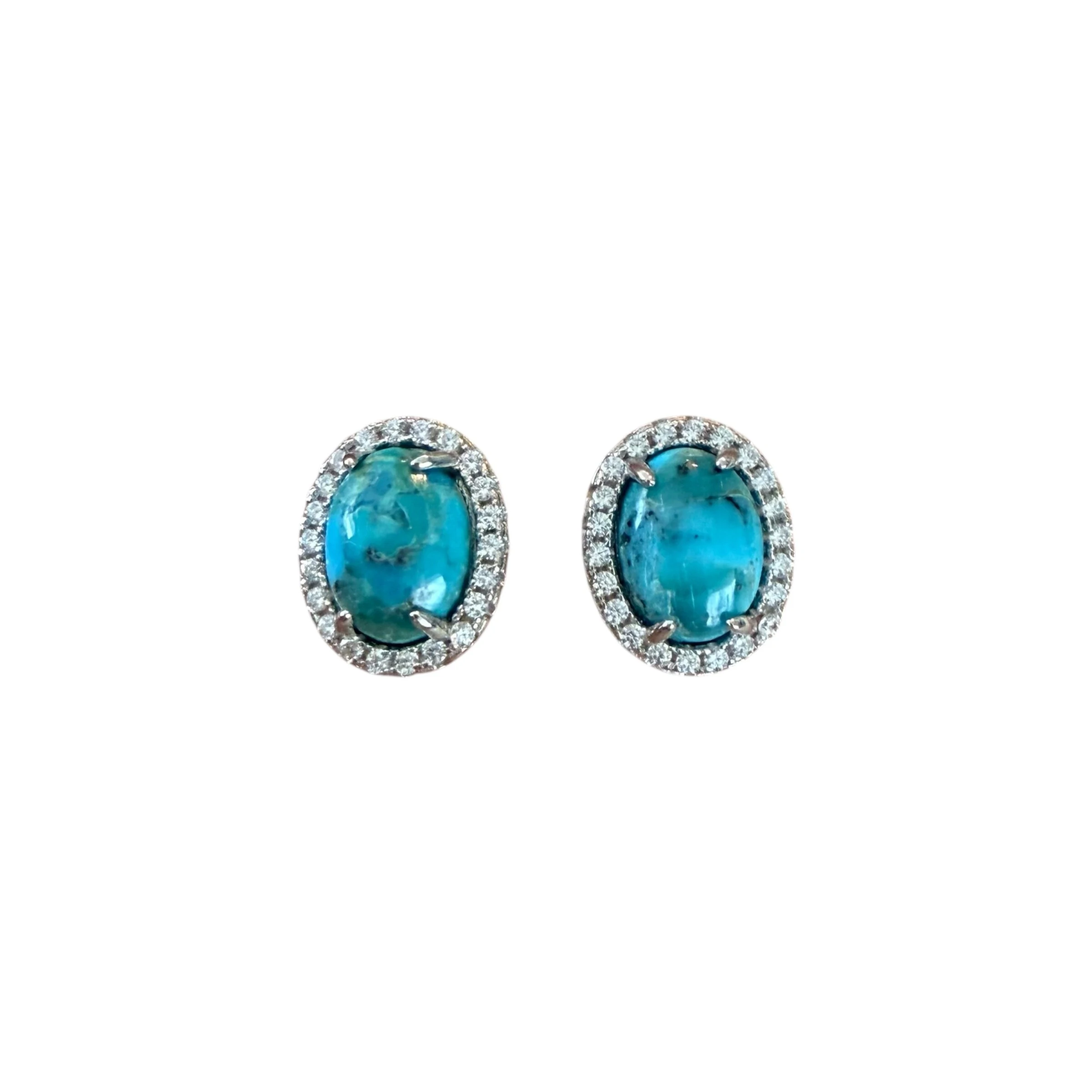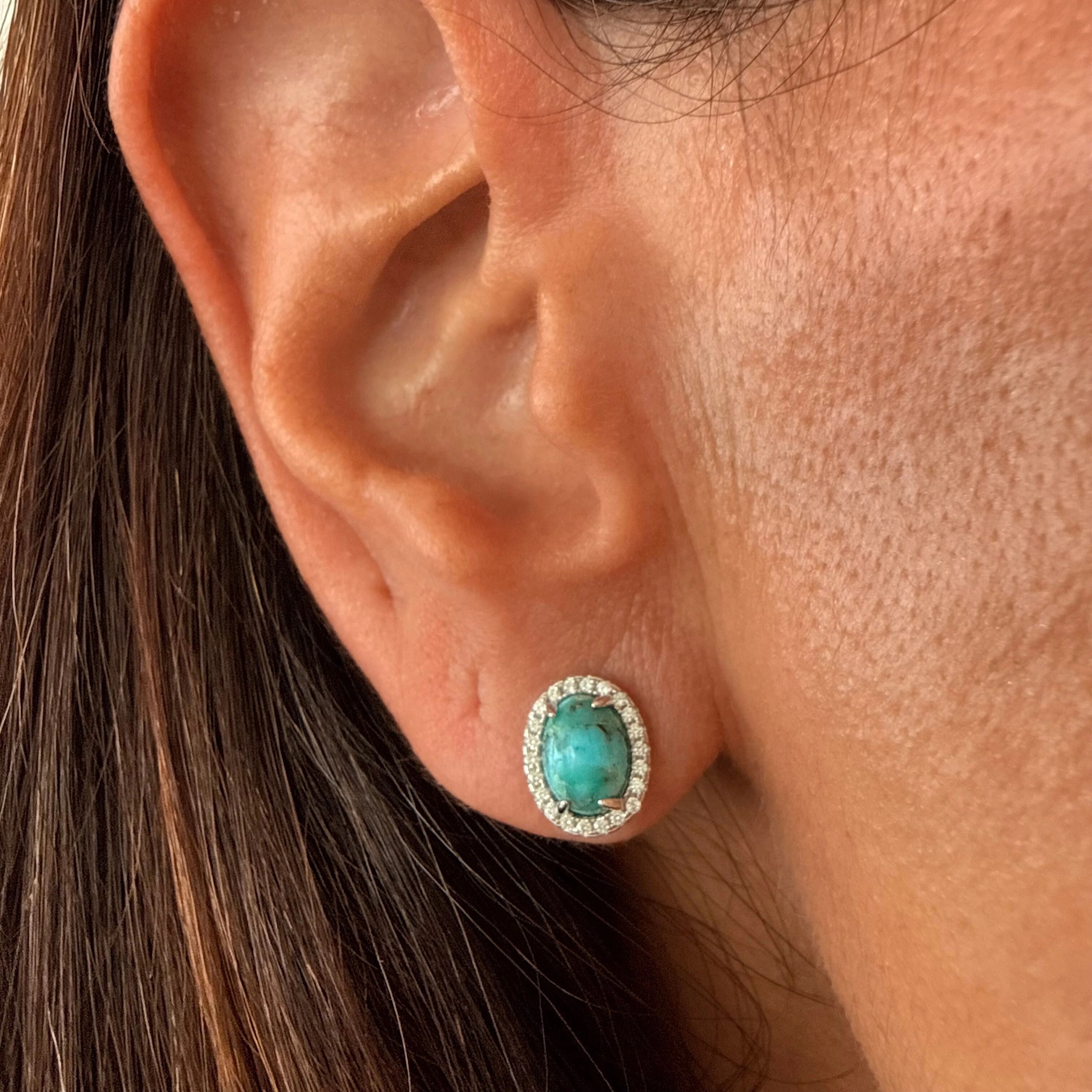 Brinco Princesa Oval em Turquesa e Zircônias em Prata 925