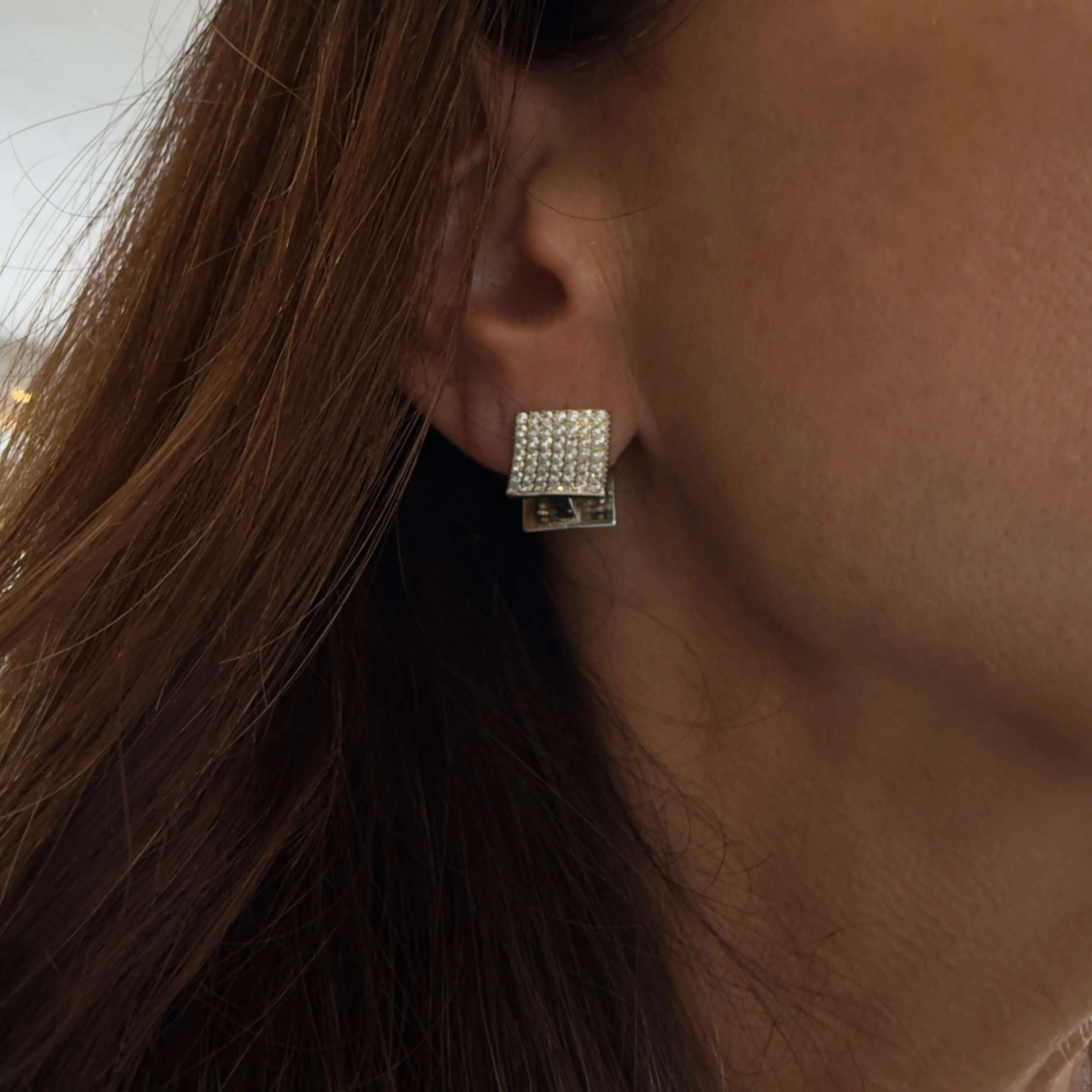 Brinco Quadrado Duplo Cravejado com Zircônias em Ródio