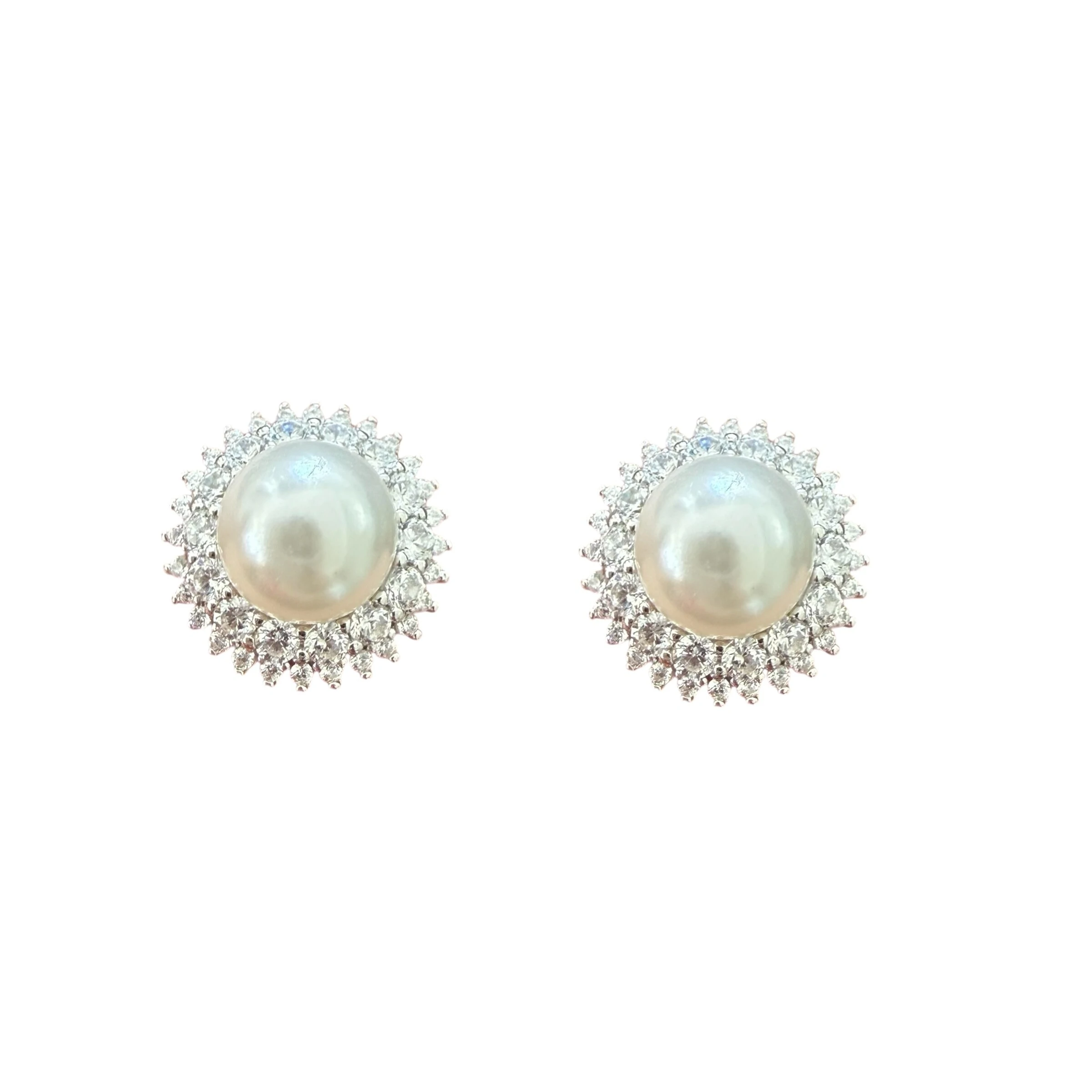 Brinco Redondo com Zircônias e Miolo Pérola Shell em Prata 925