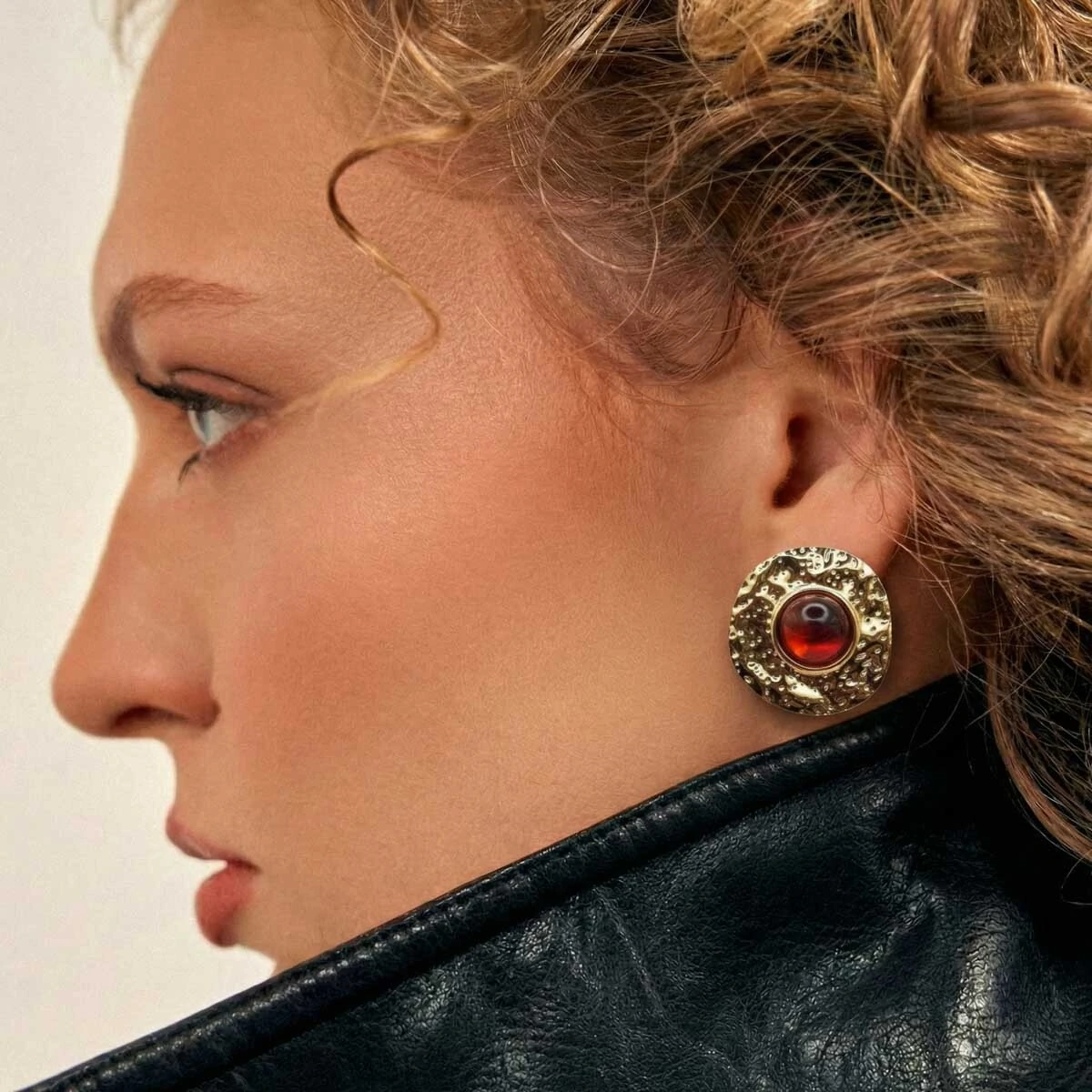 Elegante e marcante, este brinco destaca a beleza intensa da pedra em resina em tom profundo, envolvida por um design orgânico com banho de ouro 18 quilates que valoriza ainda mais seu brilho e sofisticação.