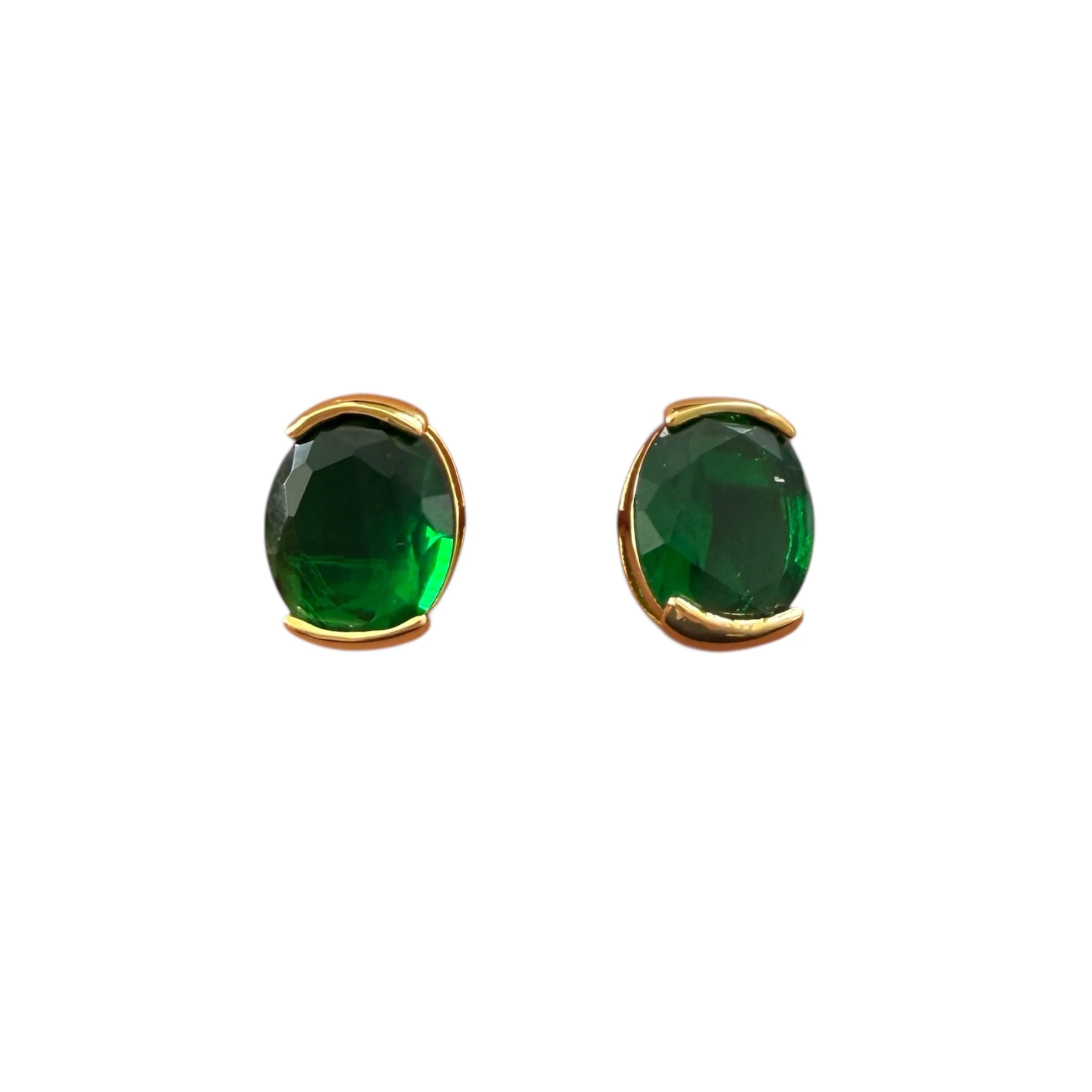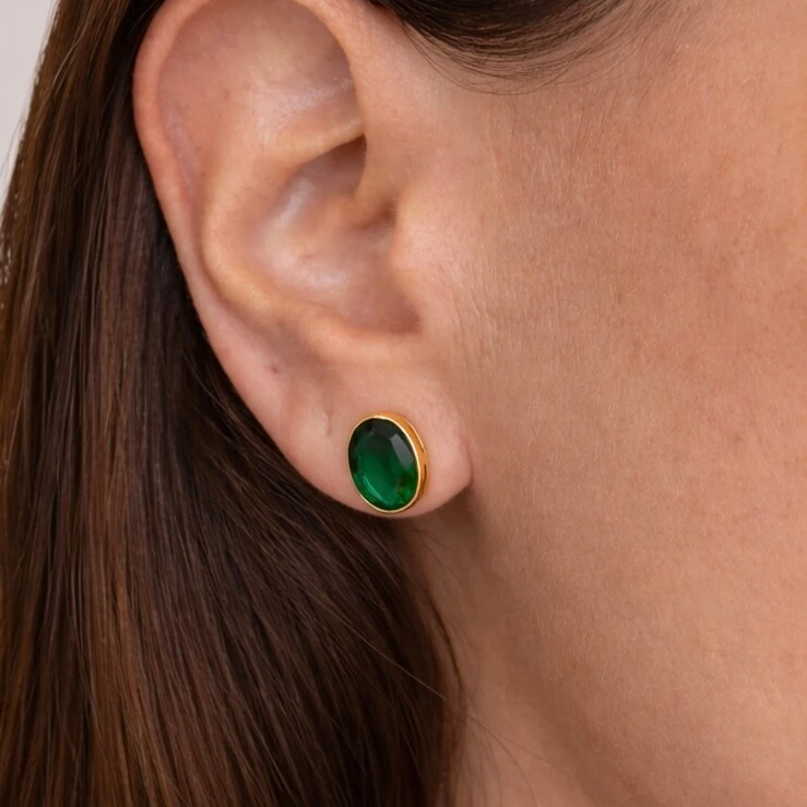 Brinco Solitário Oval Esmeralda Fusion em Dourado