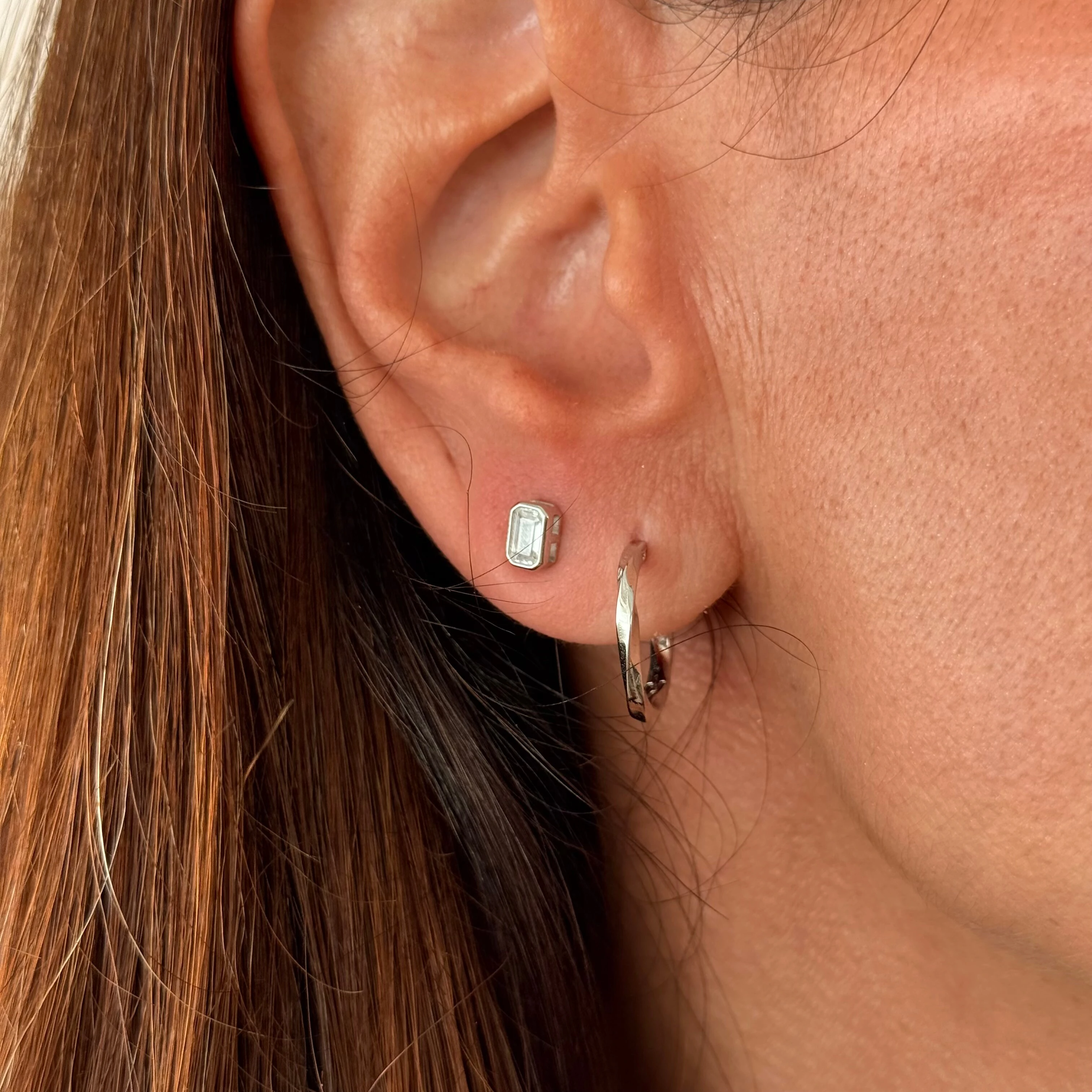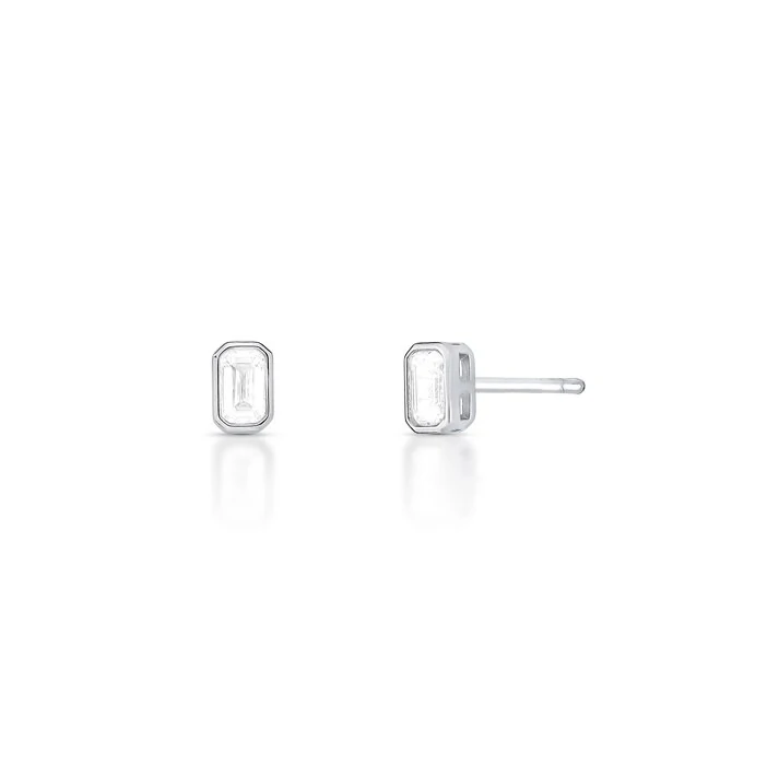 Brinco Zircônia Retangular na Prata 925