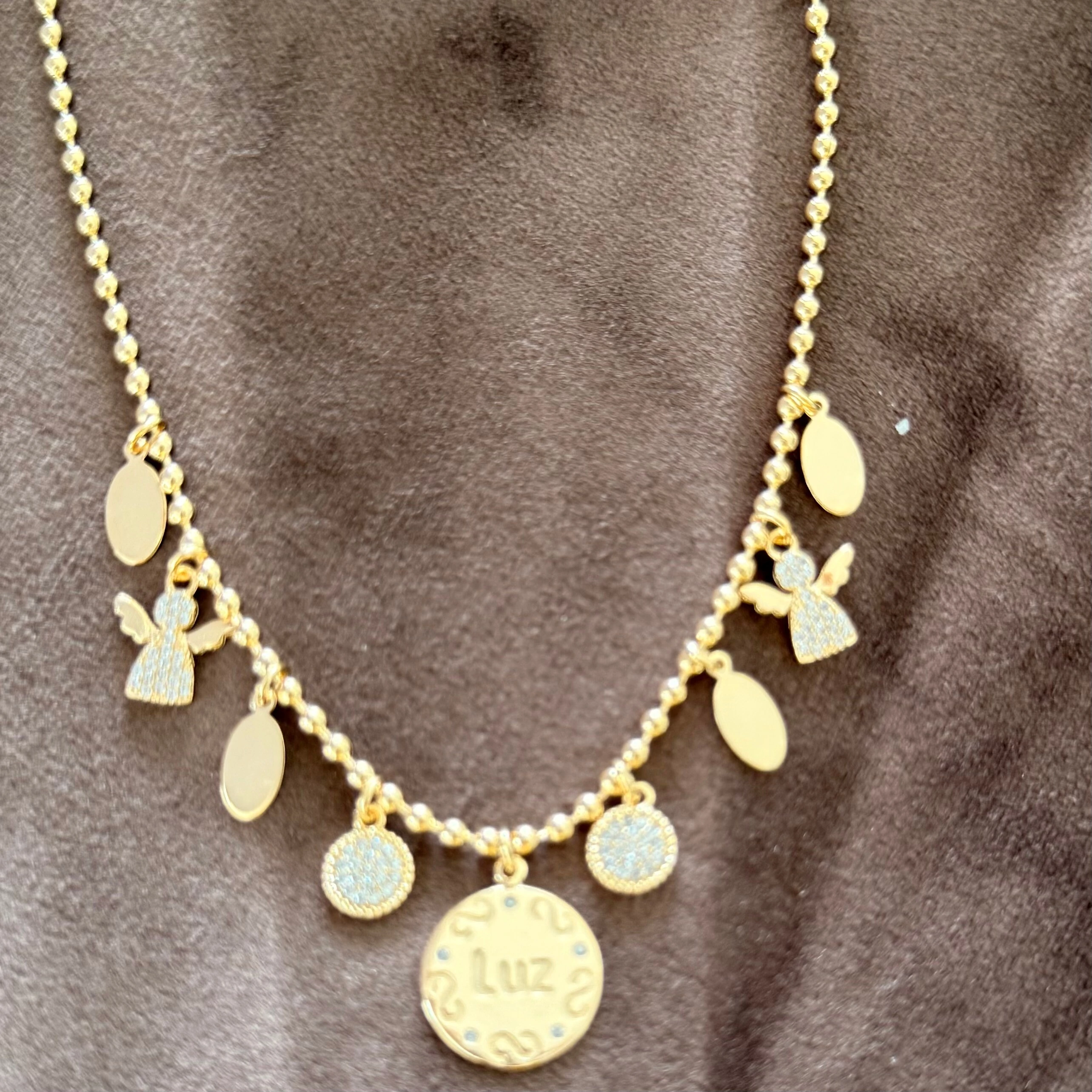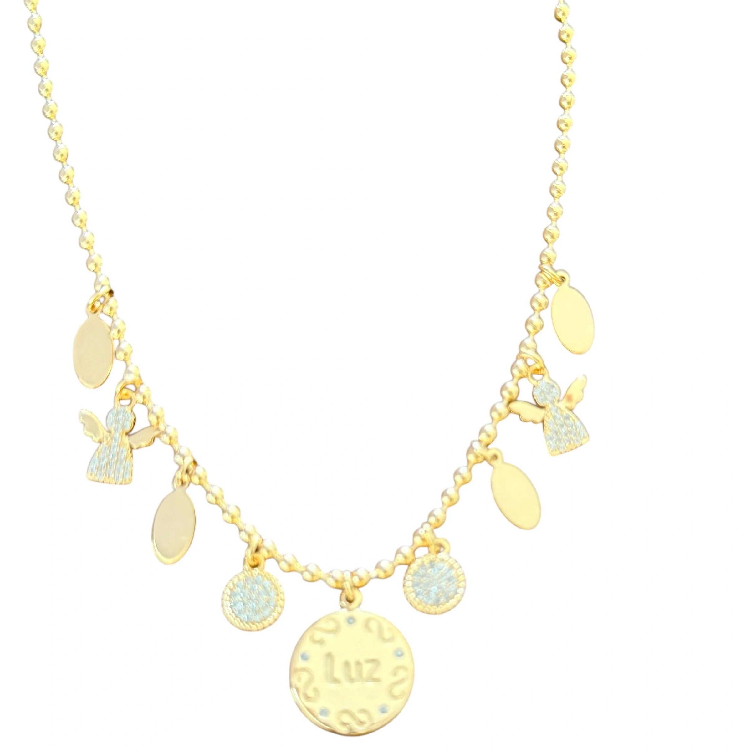 Colar Bolinhas com Vários Pingentes Pendurados em Dourado
